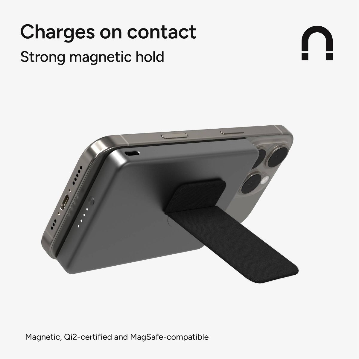 This magnetic power bank is Qi2-certified and MagSafe-compatible. Charge two devices at once with the magnetic wireless surface and the USB-C port. Powerstation Wireless Slim contains a 5,000mAh internal battery to meet the power demands of your day.