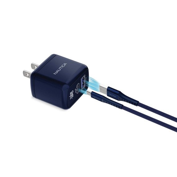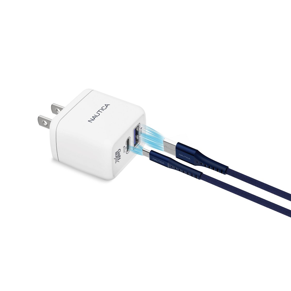 Nautica CH130 Charger - Fast Charging 30W PD USB-C / USB-A QC3.0 Dual Port Wall Charger for iPhone 16/15, Galaxy, Pixel, Compatible with MagSafe