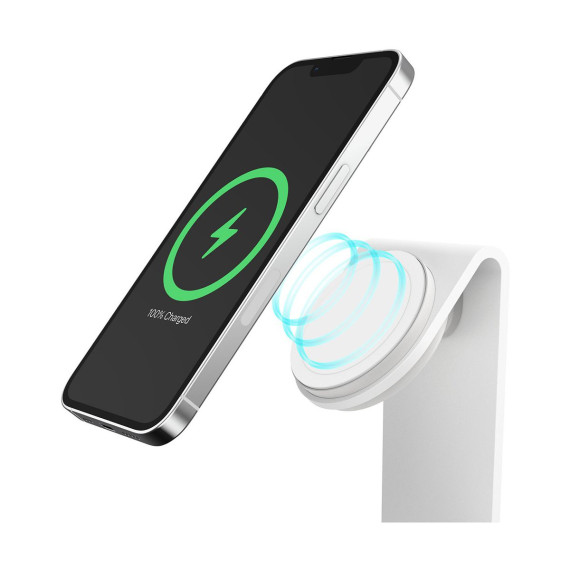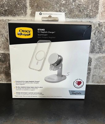 OVERVIEW A sleek, compact MagSafe charging stand with a small footprint and magnetic attachment is the ideal iPhone charger for your home. 15W MFi-certified MagSafe module provides a fast charge experience. Interact with your phone while it charges, then remove it from the stand with a simple twist. FEATURES 15W optimal wireless charging Refined, space-saving wireless charging stand Solid aluminum construction with a durable weighted design Product Guarantee Strong magnetic alignment and attachment Legendary OtterBox design for MagSafe with a premium fingerprint-resistant finish Suspends iPhone securely in any orientation while charging, streaming, and connecting Stylish design blends into any environment