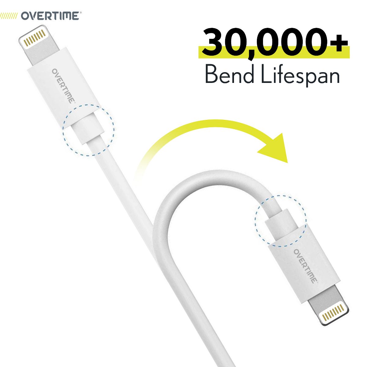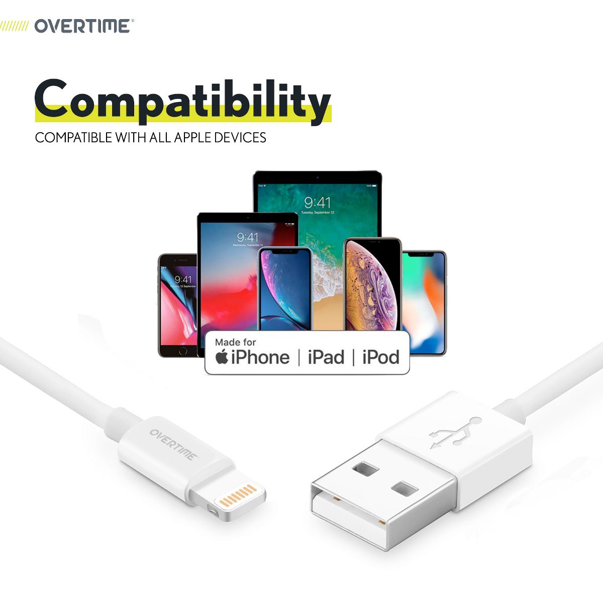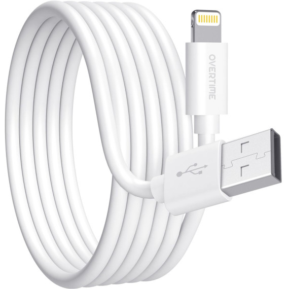 Overtime Apple MFI Certified 10ft USB-to-Lightning Charging Cable for Apple iPhone/iPad Lightning Devices, White