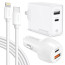 Overtime Wall and Car Charger Kit with Apple MFI Certified 6ft USBC-to-Lightning Charging Cable for Apple iPhone/iPad Lightning Devices, White