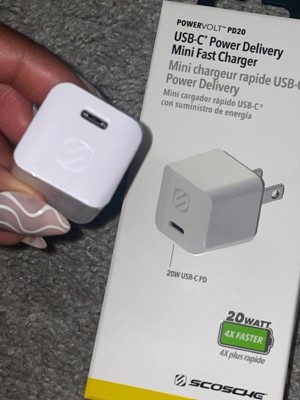 The Scosche HPDC20WT-SP PowerVolt 20W Mini Cube USB-C Fast Charger Power Delivery 3.0 is the ultimate solution for charging today's USB Type-C devices which means less time tethered to your charger and more mobility for you. The tiny, compact size is perfect for travel or storing inside your pocket, purse or backpack. Certified USB Fast Charger Power Delivery 3.0 technology safely charges your compatible devices up to 50% capacity in about 30 minutes. It’s charging speed is up to 4 times faster than a standard 5W USB Wall Charger. The built-in circuitry protects your device from over charging and overheating and is completely safe for less powerful devices. Use the 20-Watt USB Type-C port to charge your Switch or one of today's latest and greatest smartphones or tablets using only one wall outlet. Compatible with 100-240VAC. We recommend using a fast charge compatible USB-C cable to achieve the fastest charge rates.