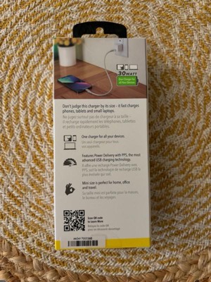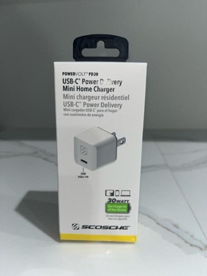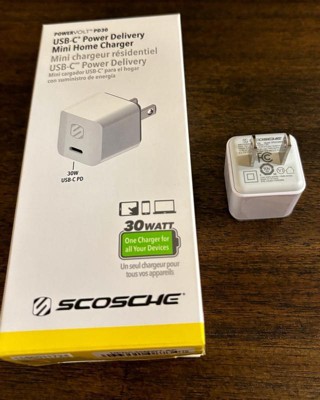 The Scosche HPDC30MWT PowerVolt 30W Mini Cube USB-C Fast Charger Power Delivery 3.0 with PPS compatibility is the ultimate solution for charging today's USB Type-C and PPS compatible devices, which means less time tethered to your charger and more mobility for you. The tiny, compact size is perfect for travel or storing inside your pocket, purse or backpack. Certified USB Fast Charger Power Delivery 3.0 technology safely charges your compatible devices up to 50% capacity in about 30 minutes. It’s charging speed is up to 4 times faster than a standard 5W USB Wall Charger. The built-in circuitry protects your device from over charging and overheating and is completely safe for less powerful devices. Use the 30-Watt USB Type-C port to charge your PPS compatible device, 30W Macbook, 30W small laptop, or one of today's latest and greatest Smartphones or Tablets using only one wall outlet. Compatible with 100-240VAC. We recommend using a fast charge compatible USB-C cable to achieve the fastest charge rates. It’s backed by Scosche’s Lifetime Tech Support and a 3-year warranty.