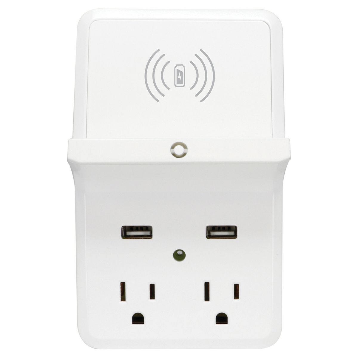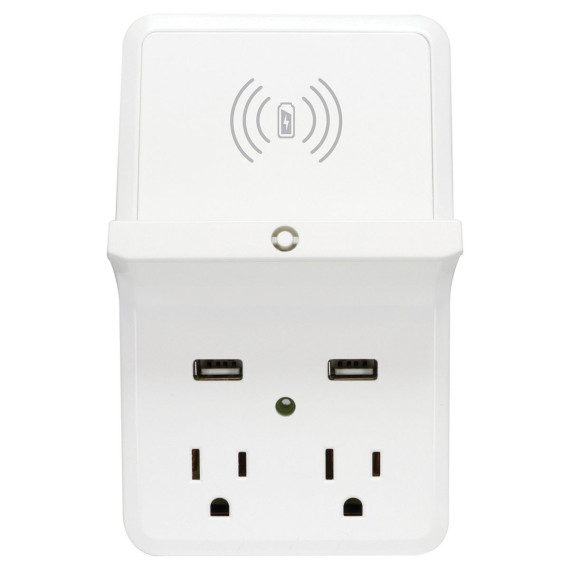 Prime Wire and Cable Wireless-Charging-Dock Wall Tap with 2 Outlets and Dual USB Charger in White