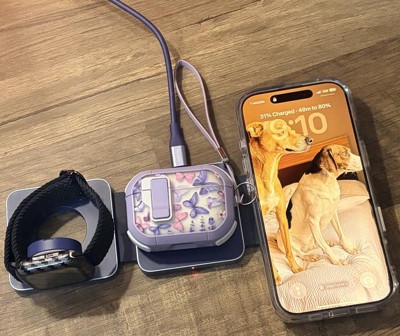 Charge smarter and faster with the Qi2 Wireless 3-in-1 Folding Charging Pad - Future Dusk from heyday™ in Dark Blue. Designed for convenience, this lightweight pad delivers efficient wireless charging for multiple devices at once, including smartphones, earbuds, and smartwatches. Featuring Qi-certified technology for safe, reliable power delivery, it offers up to 25 watts of fast charging performance. The 6-foot USB-C cable provides extended reach, while the foldable design makes it perfect for travel or minimal desk setups.