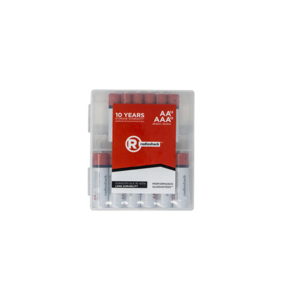 RadioShack Alkaline Batteries With 10 Year Shelf Life (12 AA and 12 AAA 24 Pack) With Hard Reusable Plastic Case For Storage 2309311