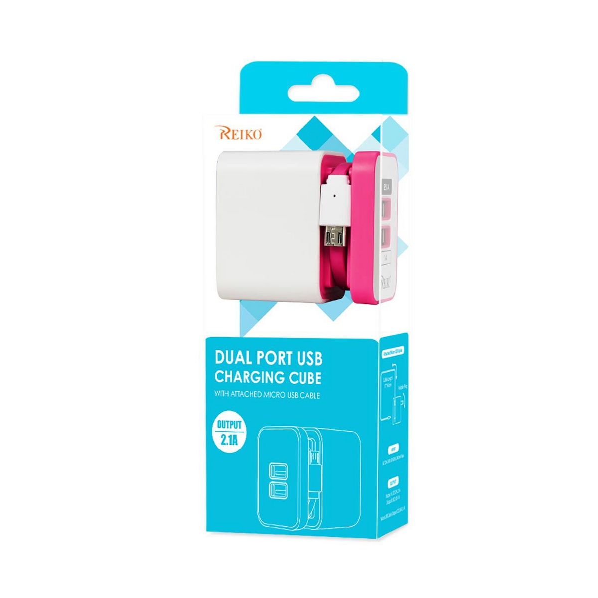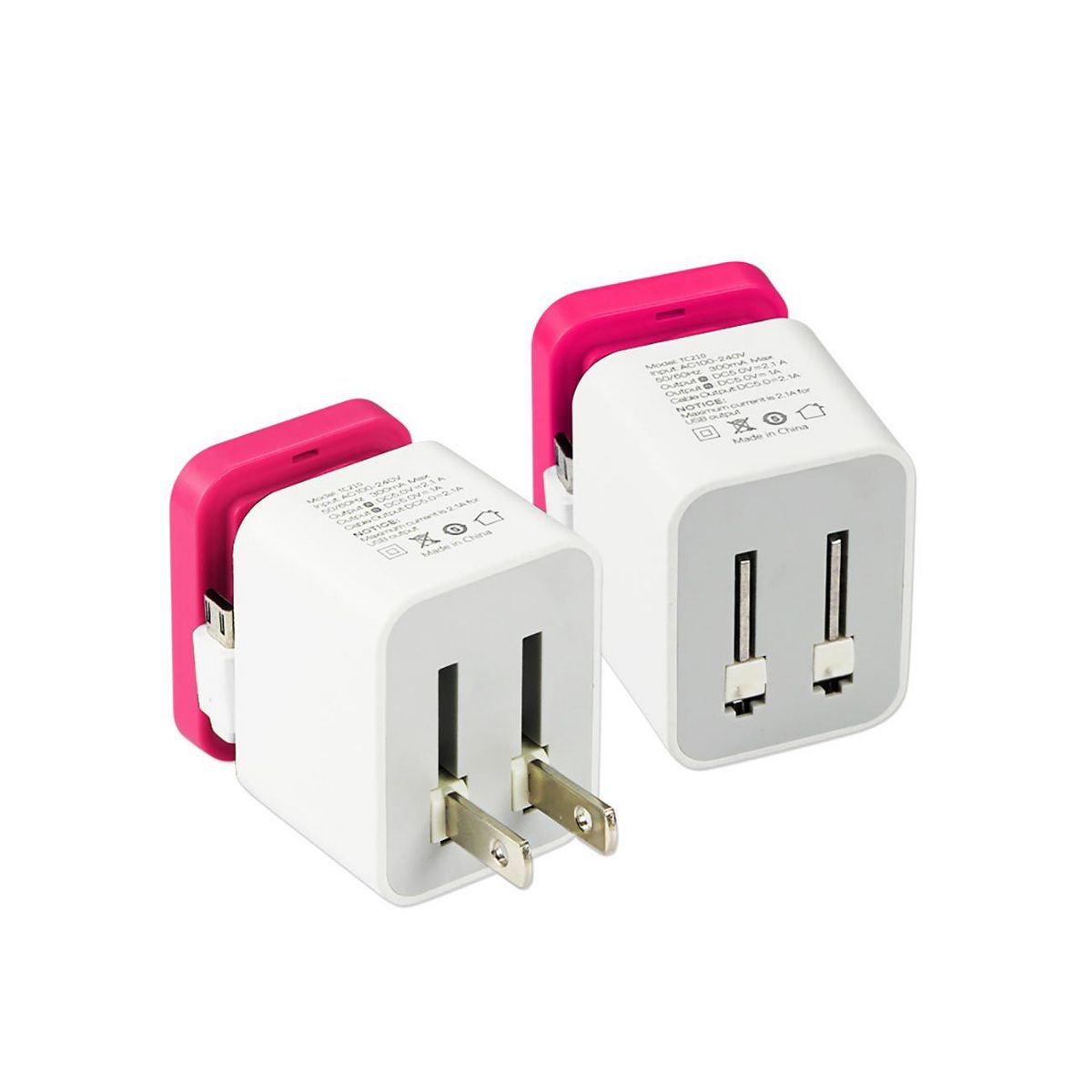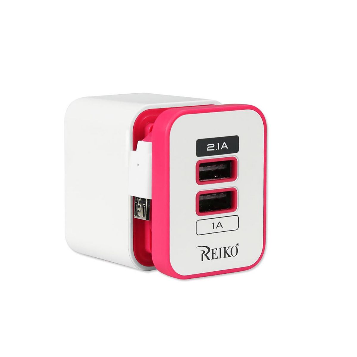 REIKO 2 AMP DUAL PORT PORTABLE TRAVEL ADAPTER CHARGER IN HOT PINK