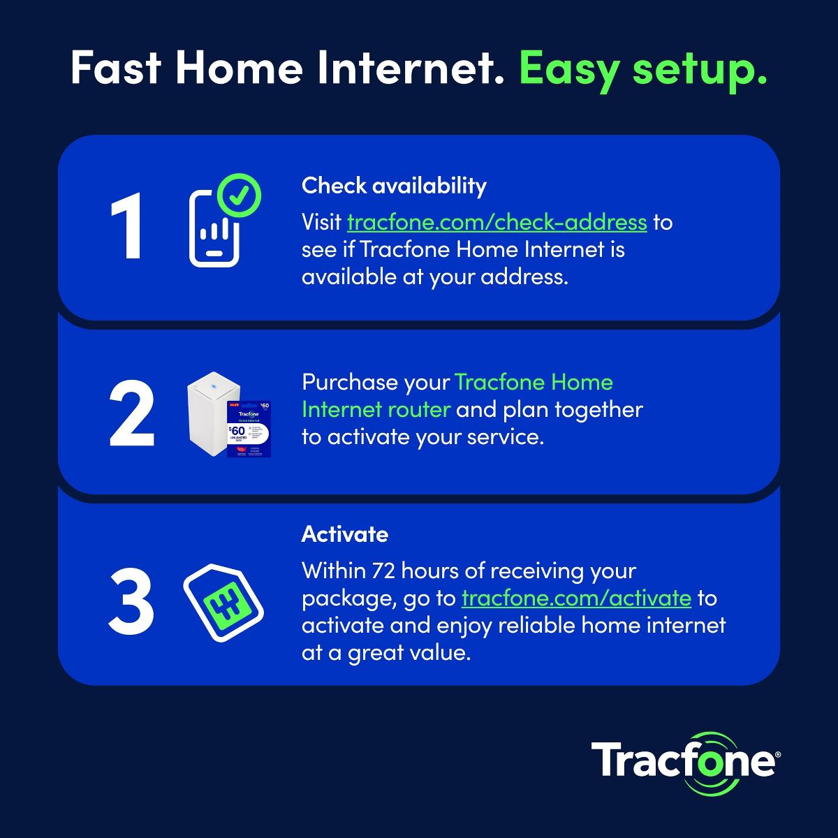 Check eligibility on our website and confirm coverage for your area. IMPORTANT: Like any internet service, this product may not be available at all addresses. Please first visit tracfone.com/check-address and verify your coverage availability before purchasing.