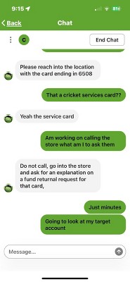 This card may only be used to add value to the Cricket Wireless account associated with your phone number. By purchasing, redeeming, or using this card you agree to the Cricket Wireless Terms and Conditions of Service available at cricketwireless.com/terms – including your agreement to dispute resolution by binding individual arbitration instead of jury trials or class actions. The entire value of this card will be applied to the charges, taxes, and fees of the Cricket Wireless account associated with your phone number during the activation process. There is no refund once this card’s value is applied to your Cricket Wireless account and Cricket does not provide or accept refunds of this card. This card is one-time use. The value associated with this PIN number and your Cricket Wireless account balance are nonrefundable, nontransferable, and cannot be exchanged for cash or any cash equivalent. Cricket is not responsible for lost, stolen, or damaged cards or PINs. Services and features are available for 30 days upon payment of the rate plan charge. Coverage, services, and speeds are not available everywhere. Cricket rate plans that include a high-speed data access allowance will have speeds slowed to a maximum 128Kbps for the remainder of the billing cycle after the allowance is used. For current network performance info and for network practices, please visit cricketwireless.com/mobilebroadband. Current rates, coverage areas, and other important information regarding your Cricket Wireless service are available by visiting cricketwireless.com, a Cricket retailer, or by calling Customer Care at 1-800-CRICKET. © 2024 Cricket Wireless LLC. All rights reserved. Cricket and the Cricket logo are registered trademarks under license to Cricket Wireless LLC.