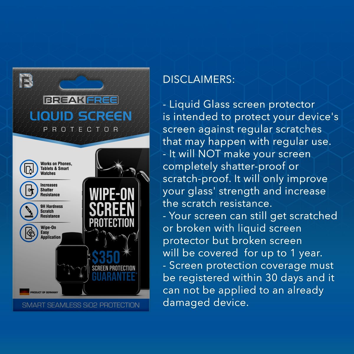 BREAK FREE Liquid Glass Screen Protector with $350 Coverage for All Phones Tablets and Smart Watches