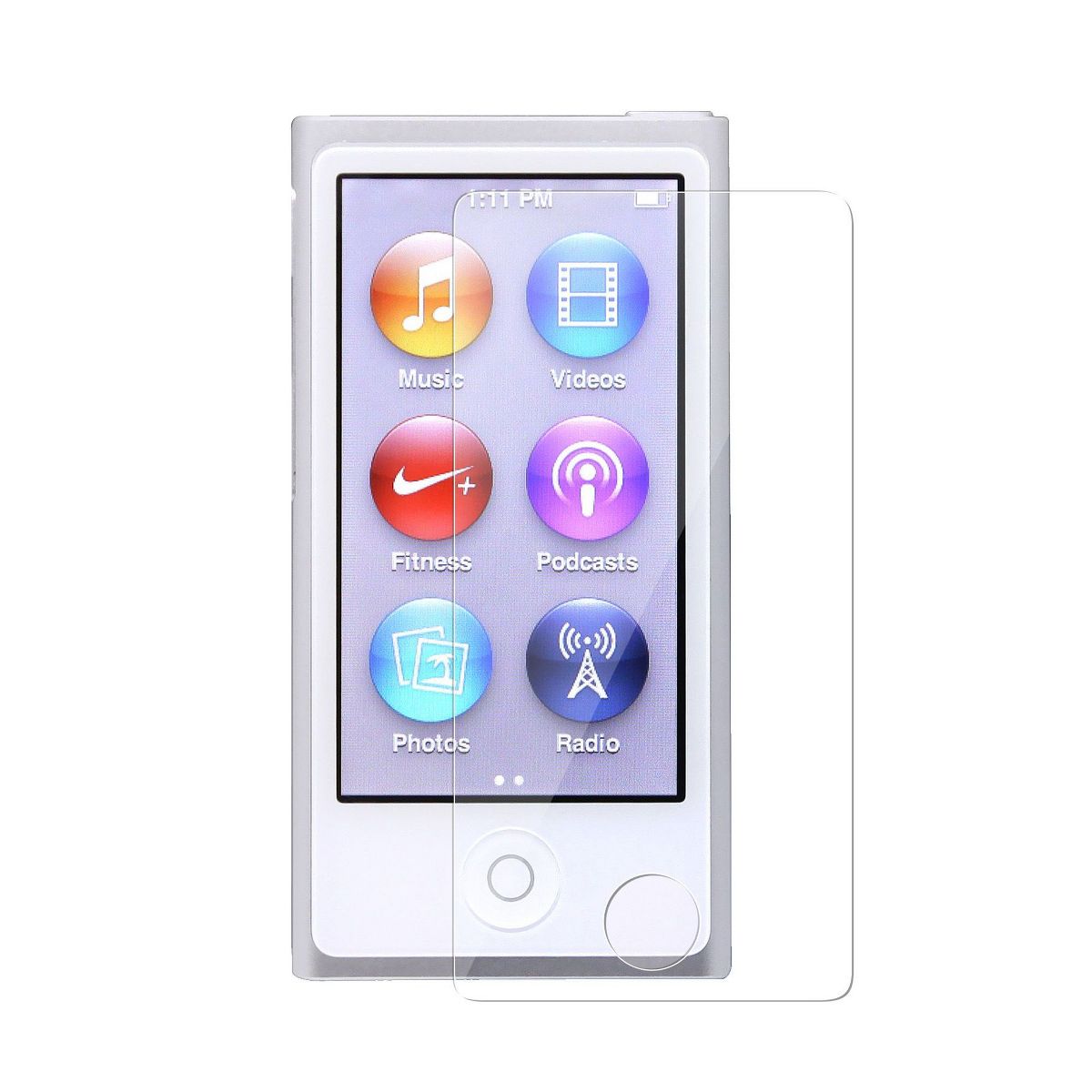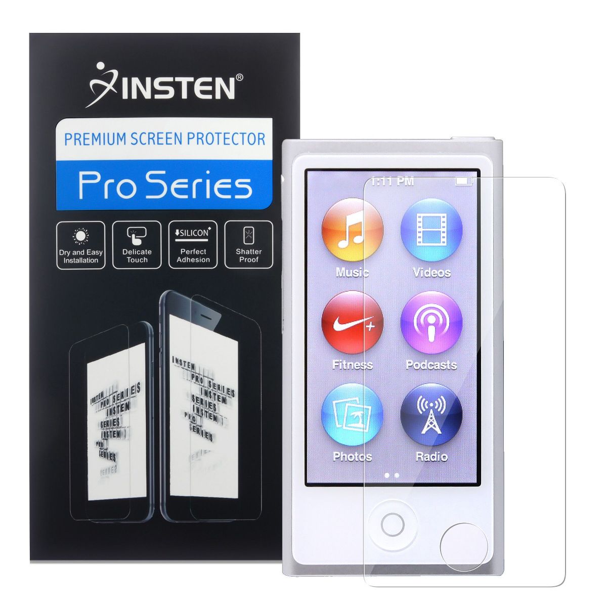 This screen protector compatible with iPod nano 7th Generation features easy to install installation steps. Installation steps may be found on the two tabs on the front and back protector layer. Protect your portable music player against dust and scratches with this reusable screen protector. Screen protector covers the whole front side of your device. Offers tough, durable, transparent surface while keeping the LCD screen clean and unscratched. Attaches smoothly with self-adhering surface. Leaves no residue when removed. Features. 99% UV Protection: Reduces eye strain caused by the LCD screen. Anti-Scratch Film: thickest and most durable. 99% Transparent: unmatched clarity. Washable and Reusable: Never need to buy another screen protector again. Silicone Adhesive Coating: No glue residue when removed. Ultra Smooth Surface: Enhance the experience and utilization of touch screen and stylus features. Includes. Reusable Screen Protector. Lint-free Cleaning Cloth. Accessory ONLY. MP3 player not included. NOTE: Please apply the screen protector gently in order to avoid too much pressure onto the screen.