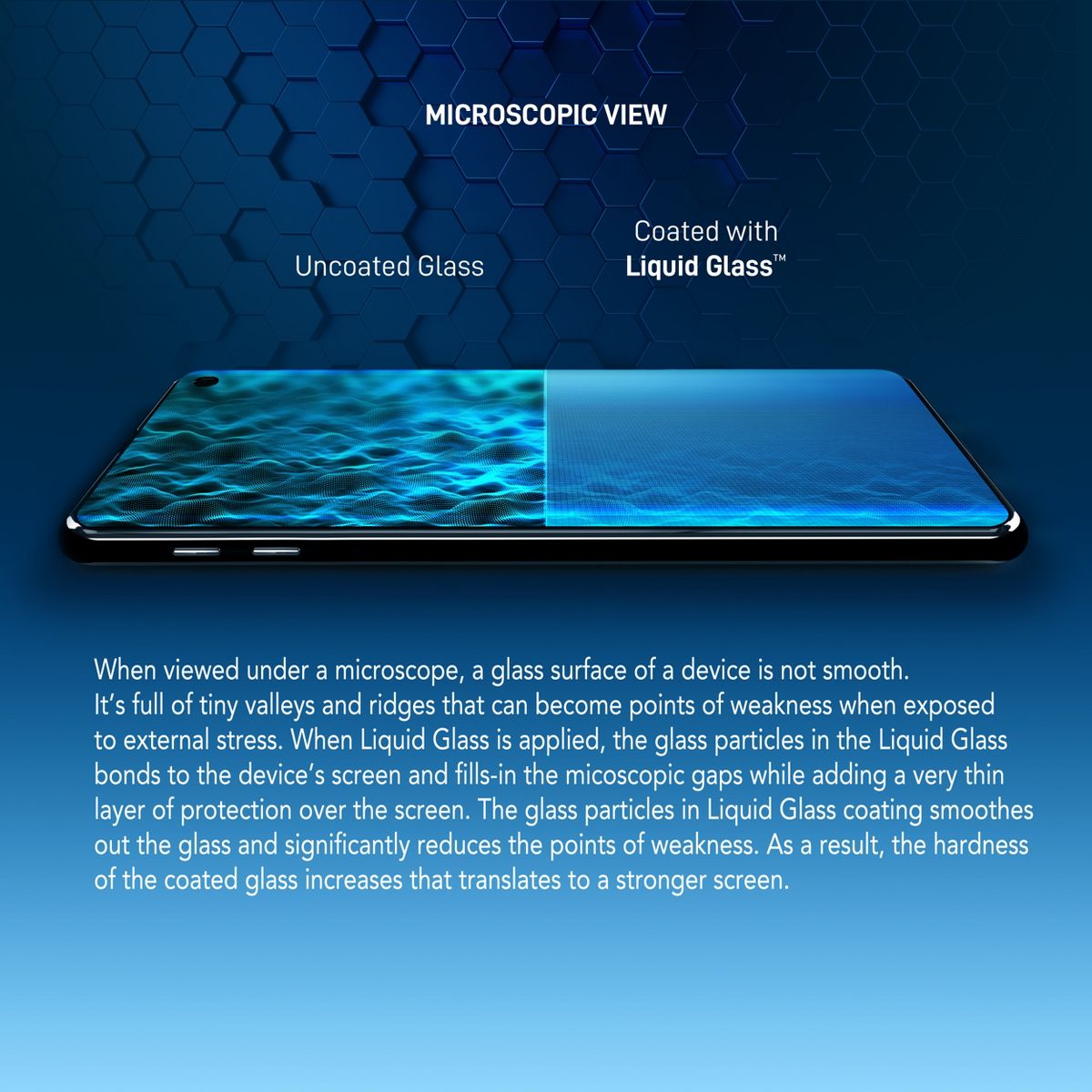 Liquid Glass is an advanced technology, invisible, wipe-on screen protector that bonds to the glass of your device offering enhanced scratch, moisture, and impact resistance. Made of silica dioxide (Si02) Liquid Glass is essentially microscopic particles of glass suspended in a liquid solution. Easy, wipe-on application makes the application a breeze. Liquid Glass adds an additional extremely thin layer of glass that is highly scratch & shatter resistant and increases the glass' strength to 9 H hardness level. Liquid Glass screen protector protects your device's screen against regular scratches that may happen with regular use. It will NOT make your screen completely shatter-proof or scratch-proof. It will only improve your glass' strength and increase the scratch resistance. Your screen can still get scratched or broken with a liquid glass screen protector (it does not fix or repair exiting crack or scratches). LIQUID GLASS is a registered trademark of LUVVITT LLC. All rights reserved.