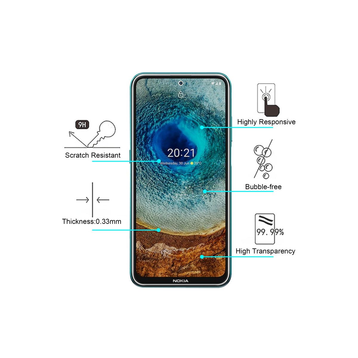 9H hardness scratch-resistant surface provides high resistance to shock, impact and damages from sharp objects.