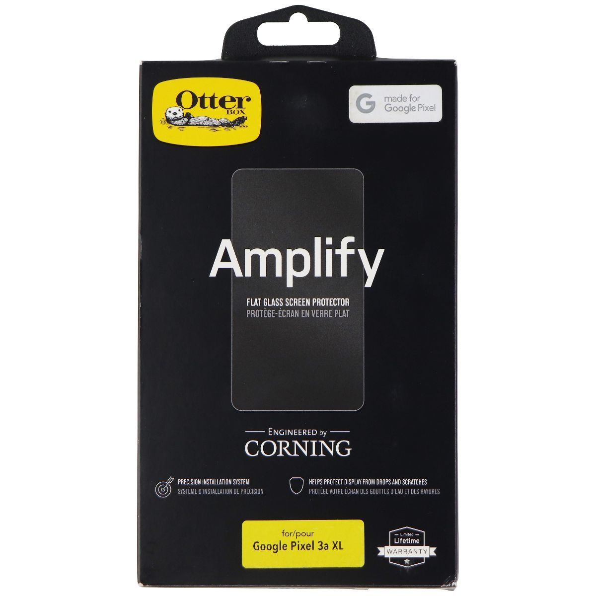 OtterBox Amplify Flat Glass Screen Protector for Pixel 3a XL – Clear blends flat tempered glass with OtterBox’s patented absorb impact technology under the surface. This 0.33 mm protector offers 9H hardness, scratch resistance, and original touch clarity. The anti-shatter backing keeps shards intact, and oleophobic coating repels fingerprints. Easy, bubble-free install with the included alignment frame.