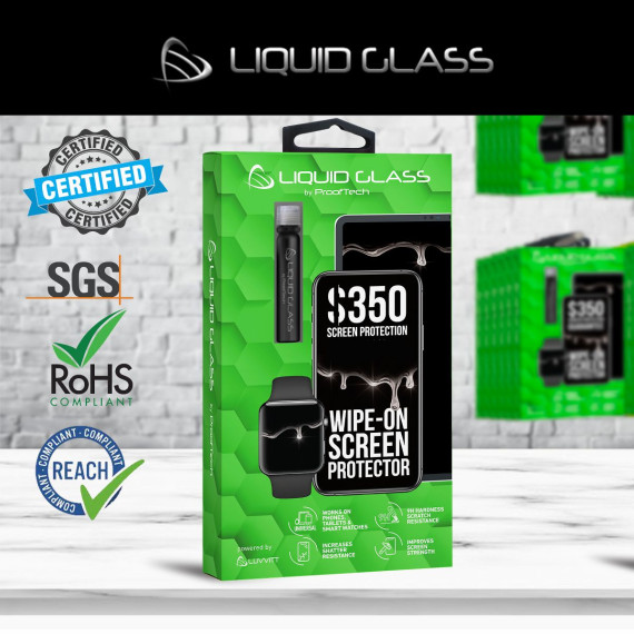 Liquid Glass is an advanced technology, invisible, wipe-on screen protector that bonds to the glass of your device offering enhanced scratch, moisture, and impact resistance. Made of silica dioxide (Si02) Liquid Glass is essentially microscopic particles of glass suspended in a liquid solution. Easy, wipe-on application makes the application a breeze. Liquid Glass adds an additional extremely thin layer of glass that is highly scratch & shatter resistant and increases the glass' strength to 9 H hardness level. Liquid Glass screen protector protects your device's screen against regular scratches that may happen with regular use. It will NOT make your screen completely shatter-proof or scratch-proof. It will only improve your glass' strength and increase the scratch resistance. Your screen can still get scratched or broken with a liquid glass screen protector (it does not fix or repair exiting crack or scratches). To activate your screen protection coverage, register your device on ProofTech's website within 30 days of purchase. Exceptions cannot be made. All claims should also be submitted through the same website.