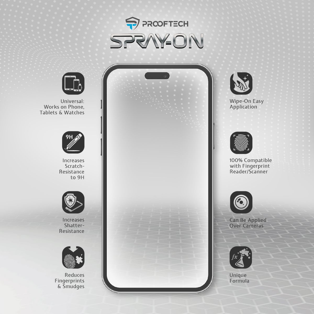ProofTech SPRAY ON Liquid Glass Screen Protector Wipe On Nano Protection for All Devices