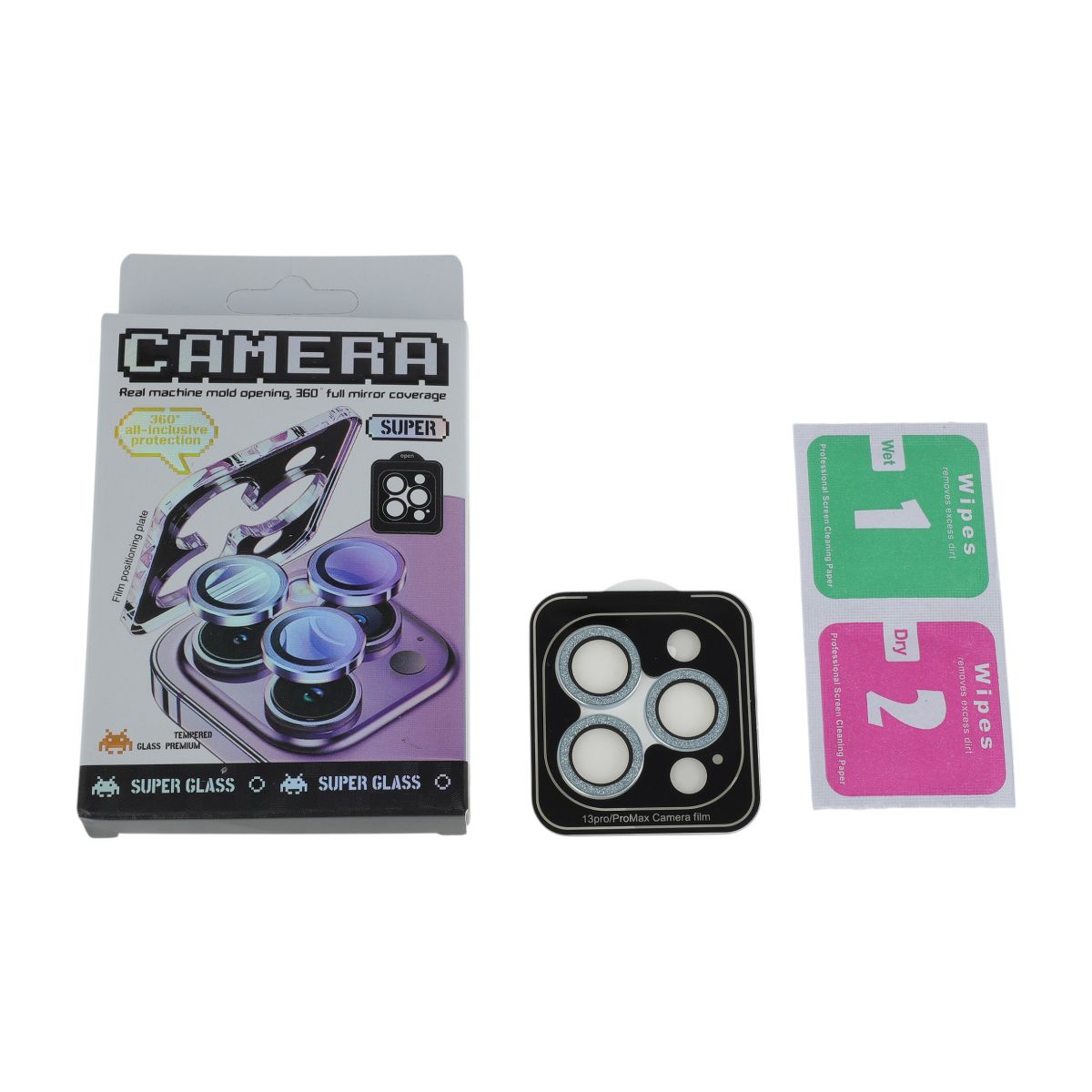 Unique Bargains Lens Cover 5H Glossy Camera Protector for IPhone13 Pro/13 Pro Max with Alignment Tool & Glitters Glass Blue 1Pcs