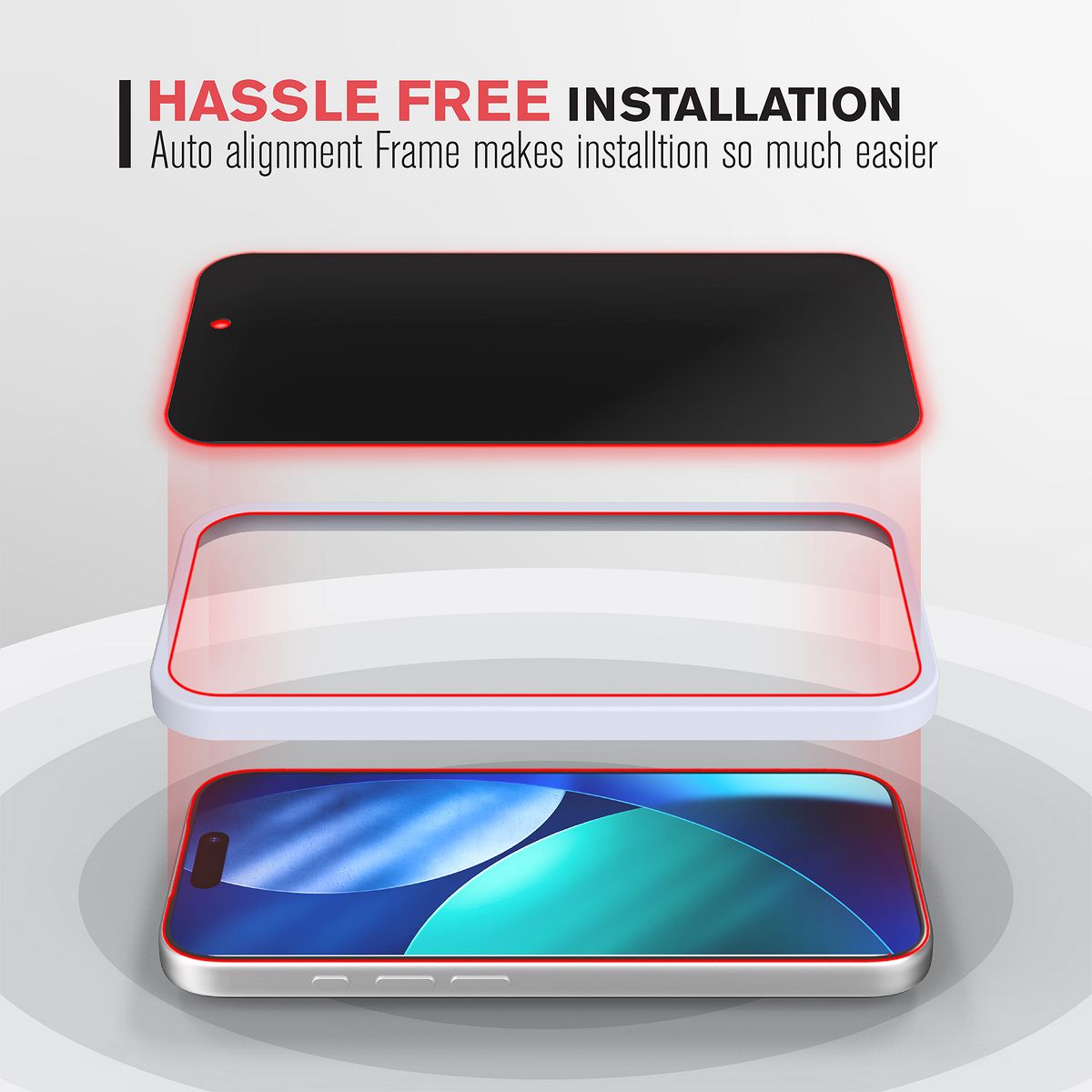 With the included alignment frame, the screen protector installation process is so much easier and accurately applied to the phone screen without any bubbles. With just one touch, the anti-static self-adhesive layer of the tempered glass screen protector ensures a quick, easy and bubble-free installation.