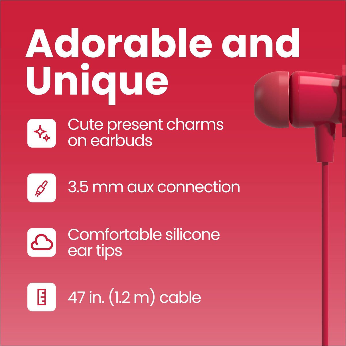 These GEMS Figural Earbuds add a touch of fun to your daily listening. These wired earbuds feature adorable mitten charms and a classic 3.5mm connection that works with most phones, tablets, and laptops. The soft silicone ear tips feel comfortable even during long playlists or podcasts, and the 47-inch cable gives you plenty of room to move around. Whether you’re commuting or relaxing at home, the GEMS Figural Earbuds keep your music within reach and style a step above!