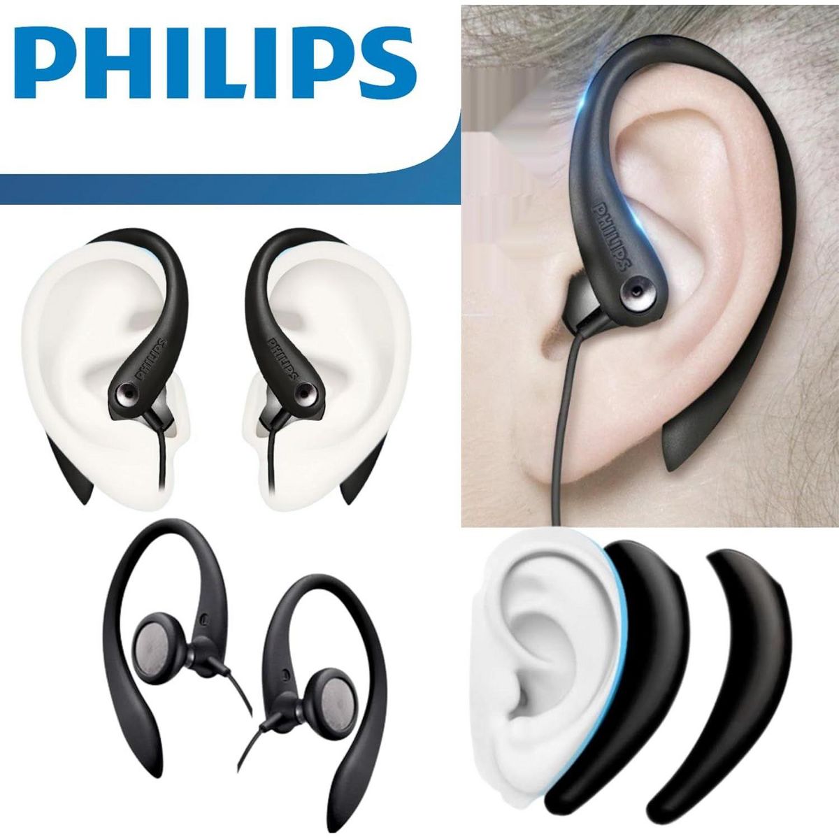 PHILIPS Flexible Earhook Headphones - Secure Fit, Neodymium Drivers, Lightweight, Ergonomic Design, Durable Build, and 3.5mm Jack for Active Use White