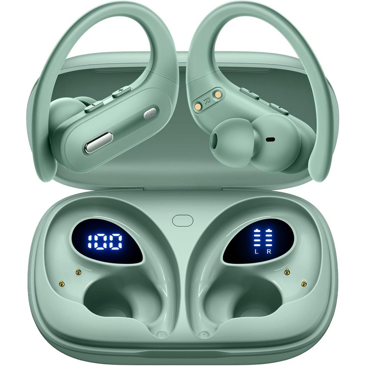 Active Noise Cancelling Wireless Earbuds Bluetooth Headphones 90 Hrs Playtime Ear Buds with Power Display Over-Ear Earphones with Earhooks IPX7 Black