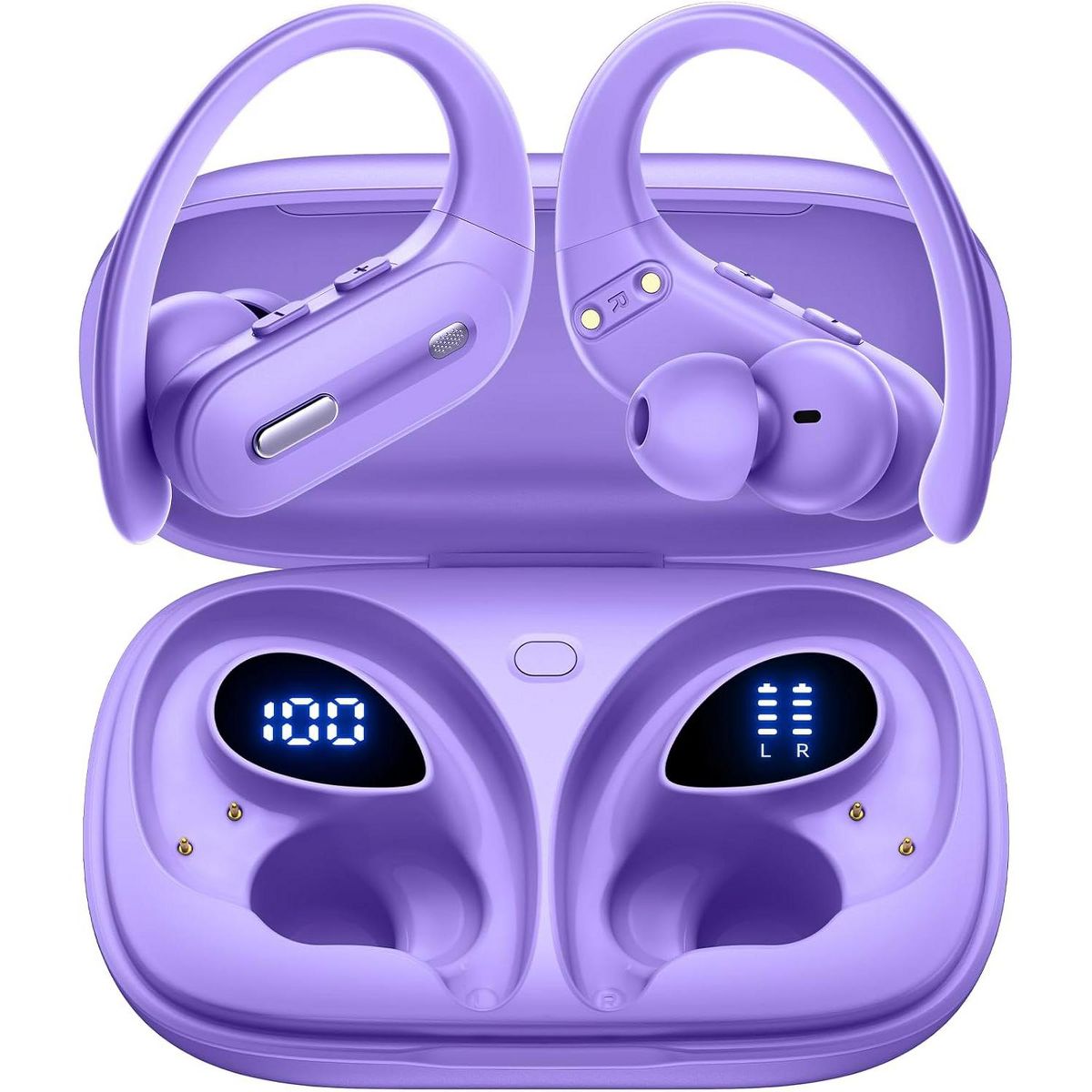 Active Noise Cancelling Wireless Earbuds Bluetooth Headphones 90 Hrs Playtime Ear Buds with Power Display Over-Ear Earphones with Earhooks IPX7 Black