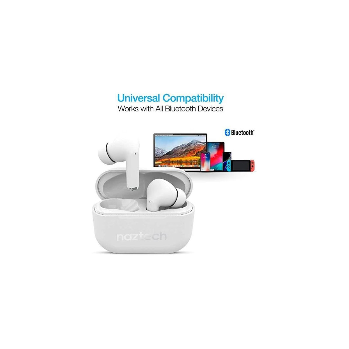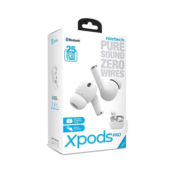 Naztech Xpods PRO True Wireless Earbuds with Wireless Charging Case White
