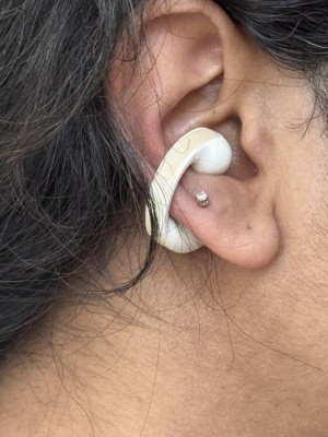 Style meets sound with the Open-Ear Jewelry Earbuds from heyday™, blending fashion-forward design with everyday function. These lightweight, true wireless earbuds feature a sleek, jewelry-inspired look while delivering crystal-clear audio and all-day comfort. With sweat resistance for activewear, a built-in mic for calls, and up to 5 hours of battery life, they’re as practical as they are chic.
