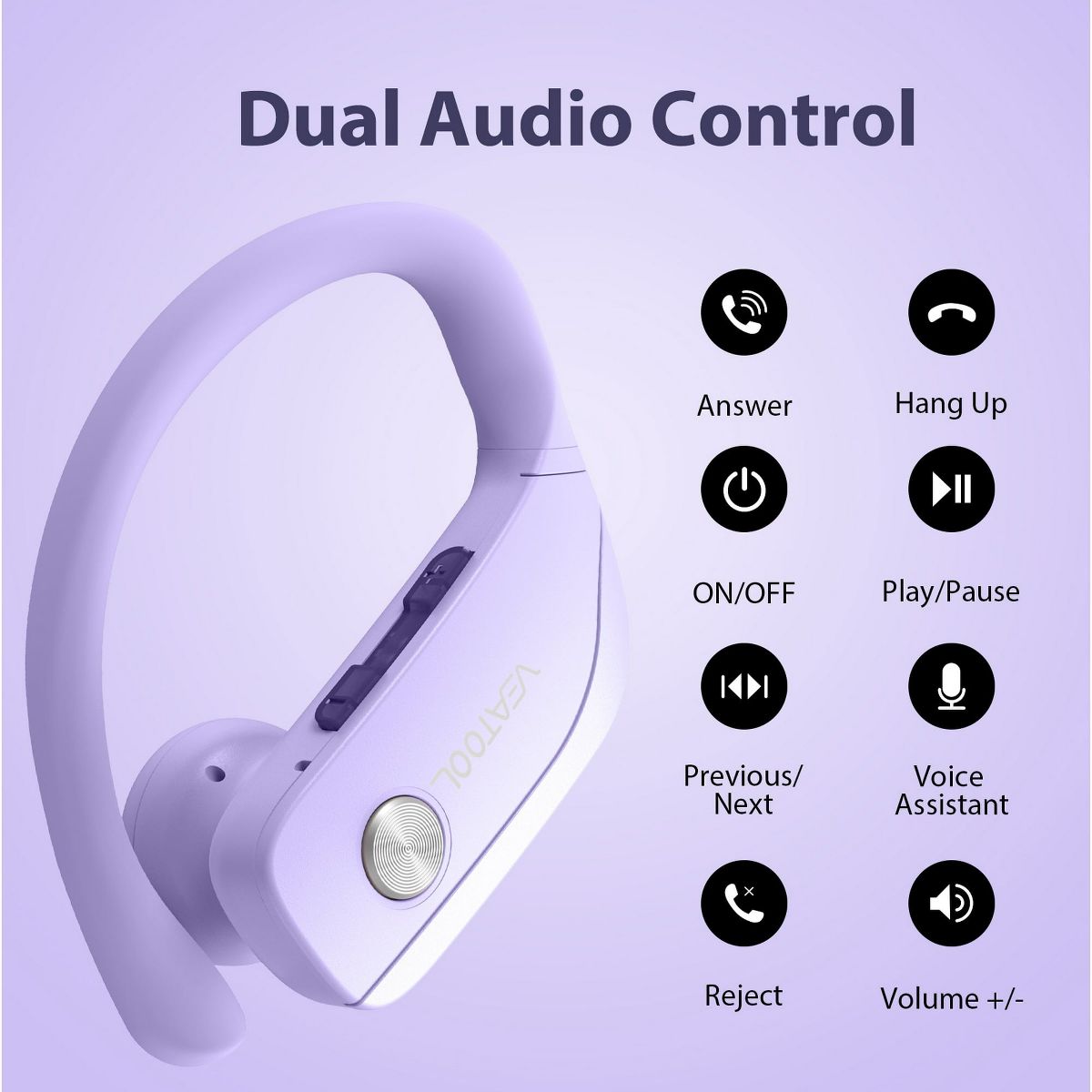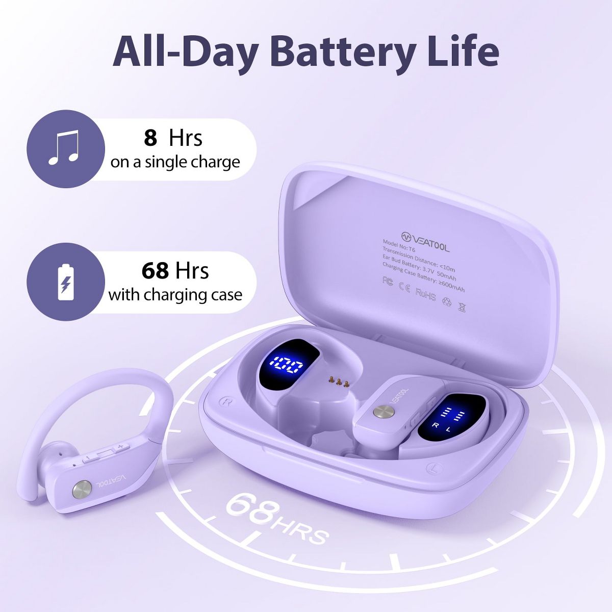 VEATOOL T6 Wireless Earbuds Bluetooth Headphone Sport, Bluetooth 5.4 Earbud, 72Hrs Earphone with Earhook