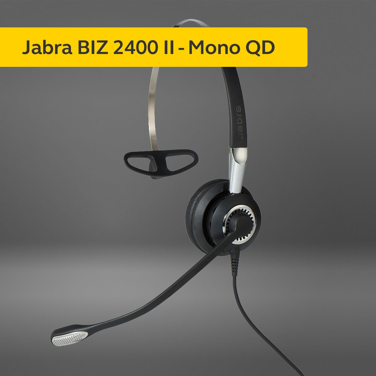 Jabra BIZ 2400 II QD Mono is a mono headset with QD (Quick Disconnect) plug that provides instant connectivity to a wide range of desk phone systems.