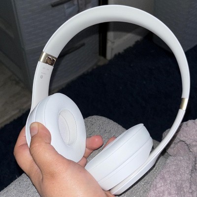 ³Testing conducted by Apple in March 2024 using preproduction Beats Solo 4 and software paired with iPhone 15 Pro units and pre-release software. The playlist consisted of 358 unique audio tracks purchased from the iTunes Store (256-Kbps AAC encoding). Volume was set to 50%. Testing consisted of full Beats Solo 4 battery discharge while playing audio until Beats Solo 4 stopped playback. Battery life depends on device settings, environment, usage, and many other factors.