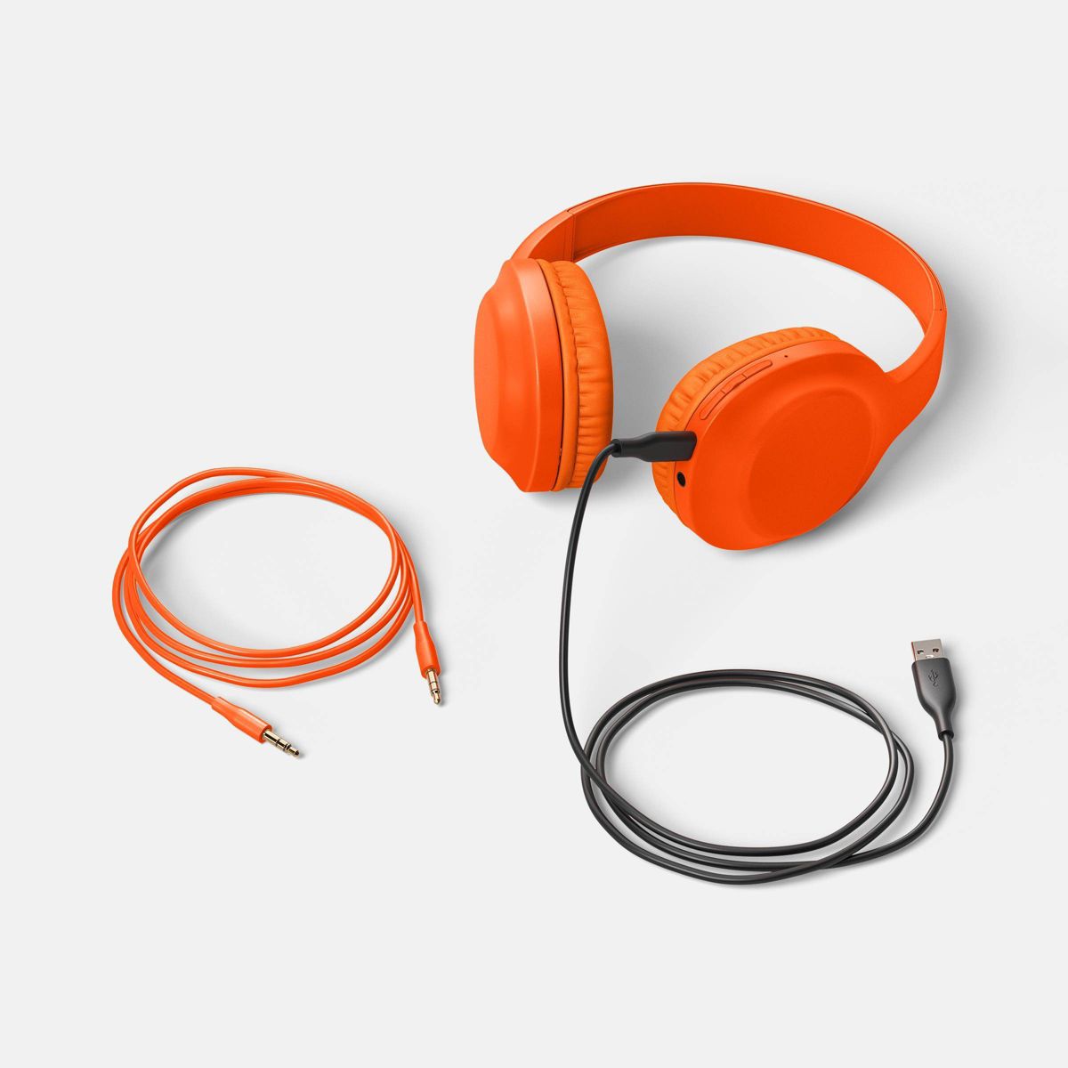 Built-In Microphone Wireless Banded Headphones - heyday™ Coral Orange: Hybrid Wired/Wireless, Adjustable Headband