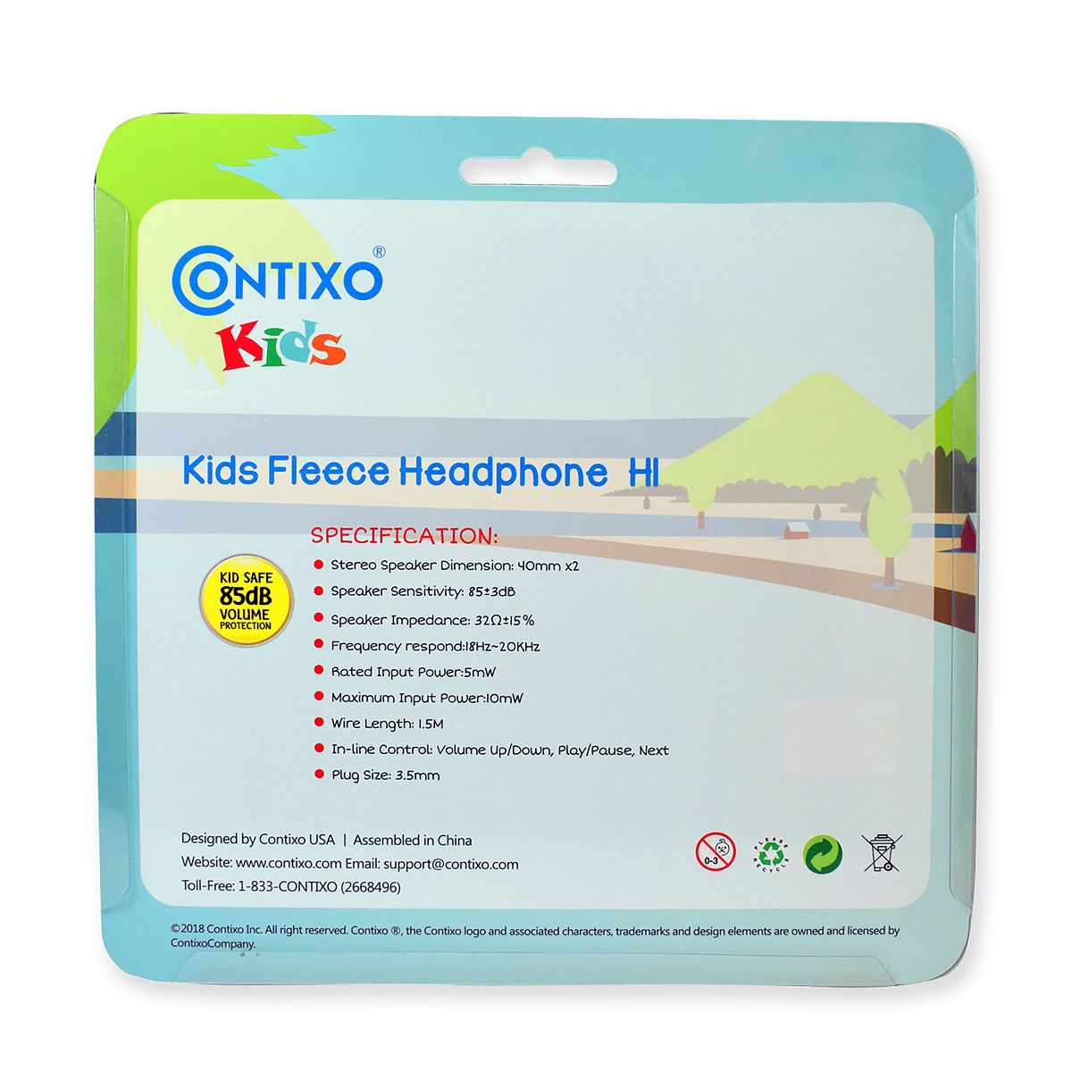 Our Contixo H1 kids soft fleece headphones, earbuds, earphones are warm and cozy and suitable for young children ages 3 and up (kids with head circumference up to 19 inches). The soft fleece material is ideal for early and chilly mornings, cold nights, winter months. It comes with an 85dB volume limit to make it child safe and friendly to protect your kids hearing protection. The cozy kids headphones are excellent and great for school, travel, long car rides, trips, nights and mornings, airplane air flights, or for everyday wear around the house and during fall and winter months. Kids can also wear these while sleeping and can also be used as a sleeping mask over their eyes. Easy to remove. The soft fleece headband design with velcro helps with keeping the kids fleece earphones in place while also keeping the earbud drivers away from directly inside the ears. The soft fleece headphones for children and young kids is machine washable and the wired earphones can be removed from the fleece material and kept separate for cleaning purposes for when not in use. The children earphones, headphones are warm and comfortable and makes it fun for kids to listen to music and or watch videos. It is convenient, kid and childsafe, in-line volume control, has 85dB volume limiting feature, and our kids soft fleece headphones are made to fit perfectly on small, little heads (up to 19 inches circumference). Both boys and girls will love the earbuds (and even toddlers and infants) while listening to soothing music before or while sleeping. The fleece band is adjustable, slightly expandable, can be washed, kids will love it, comes with a braided cord and fits with any device that has a 3.5mm jack. The cozyphones headphones are great for kids that love music and audio. The Contixo kids soft fleece headphones also make great gifts and presents for holidays, birthdays, rewards for kids, travel, road trips when going on trips, and family holidays and vacations.