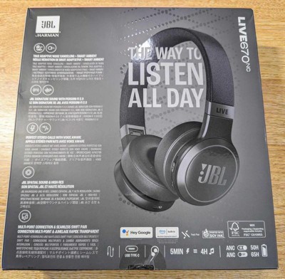 JBL Live 670NC headphones deliver powerful JBL Signature Sound in a comfortable on-ear headband style. When you’re deep in your flow True Adaptive Noise Cancelling with Smart Ambient technology keeps you free from distractions. Then when you want to keep an ear open to the world around you you can stay aware as you continue listening to your favorite playlist—or even have a conversation without taking the headphones off. Easily access your preferred voice assistant with a tap on the ear cup to cue up a song text your friend check the weather and much more. You’ll enjoy 65 hours (50 hours with BT+ANC on) of music streaming. And if you still need more a 5-minute speed charge gets you another four hours. The JBL Live 670NC can connect with two Bluetooth® devices simultaneously so you’ll never have to miss a call even if you’re watching a movie on your tablet.