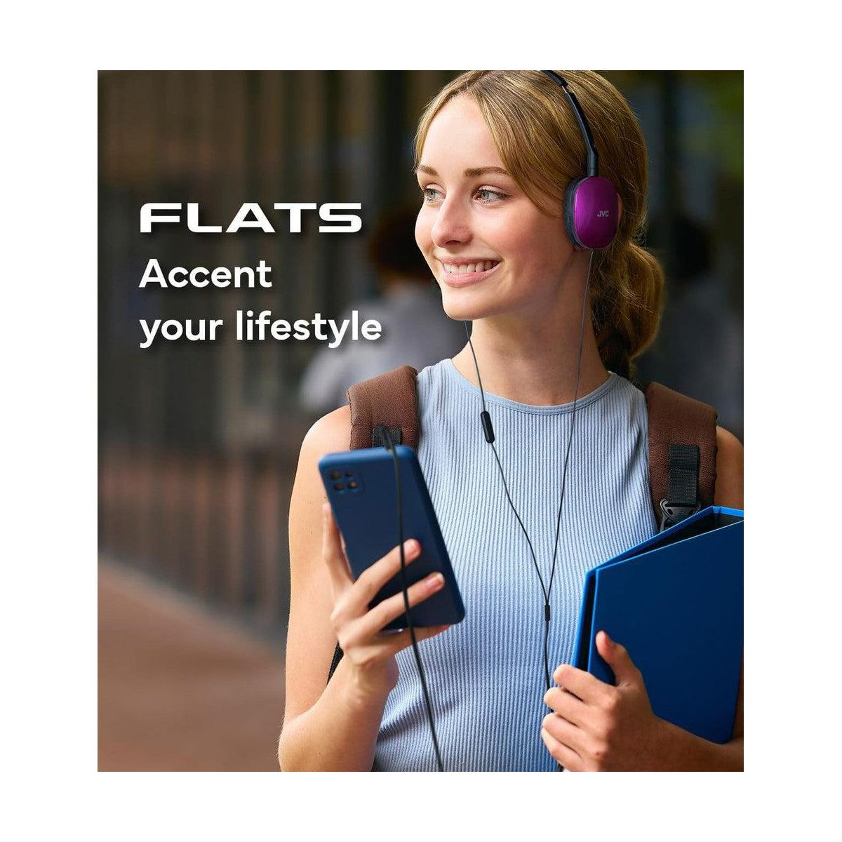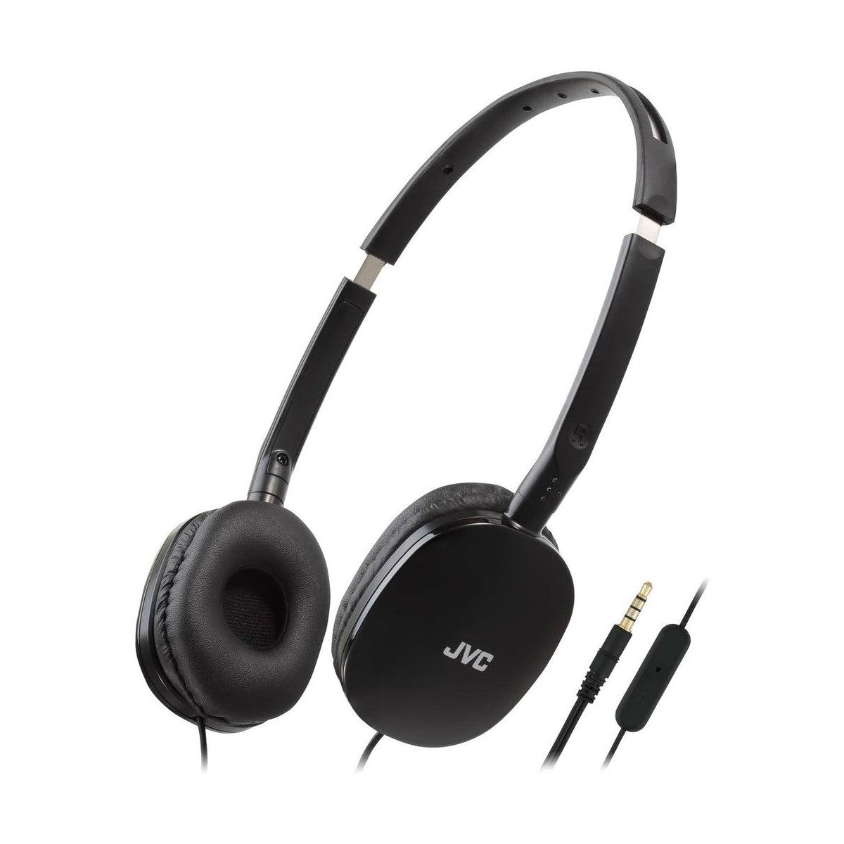 JVC Flat Foldable Colorful Flats On Ear Headphones with Remote and Microphone, 3.94 Foot Gold Plated 3.5mm Slim Plug - HAS160M