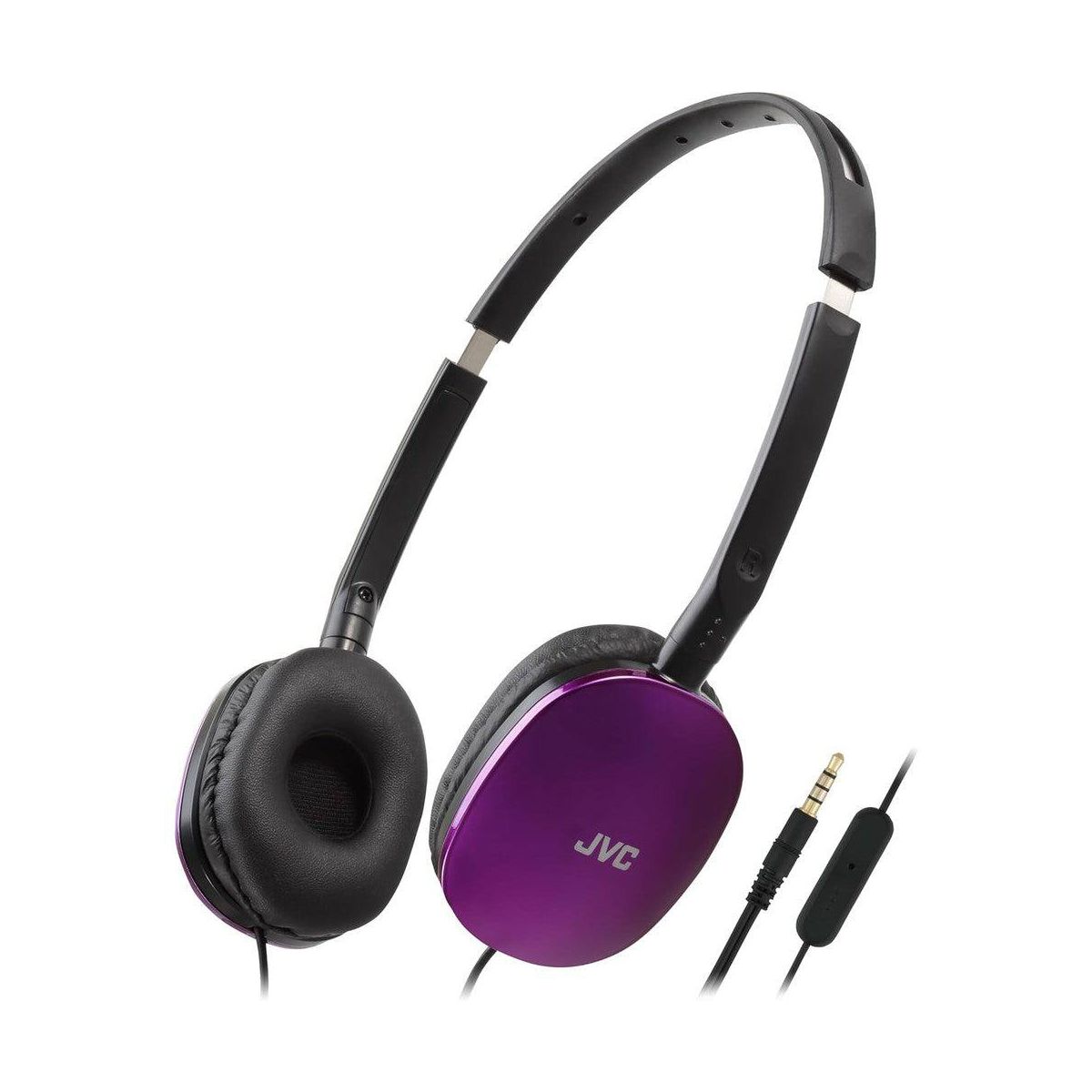 JVC Flat Foldable Colorful Flats On Ear Headphones with Remote and Microphone, 3.94 Foot Gold Plated 3.5mm Slim Plug - HAS160M