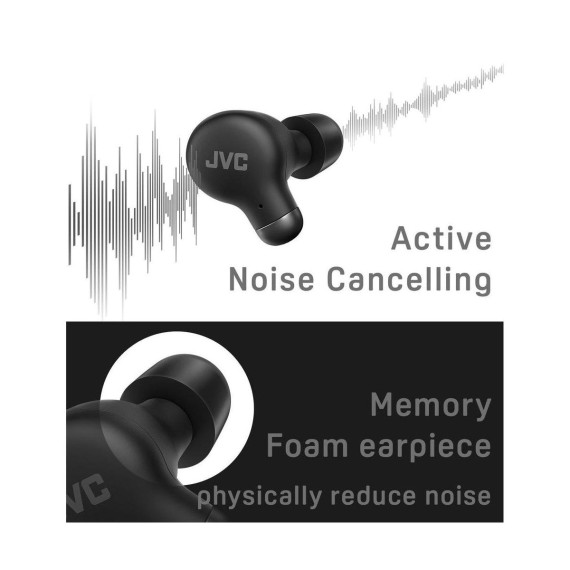 JVC Marshmallow Active Noise Canceling True Wireless Earbuds Headphones, Long Battery Life (up to 28 Hours), High Quality Sound with Neodymium Driver, Including Memory Foam Earpieces - HAA25T