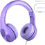 LiLGadgets Connect+ Pro Kids Headphones with Mic and Cord, SharePort Technology, Volume Limit 93db Wired Inline 3.5mm Jack- Purple