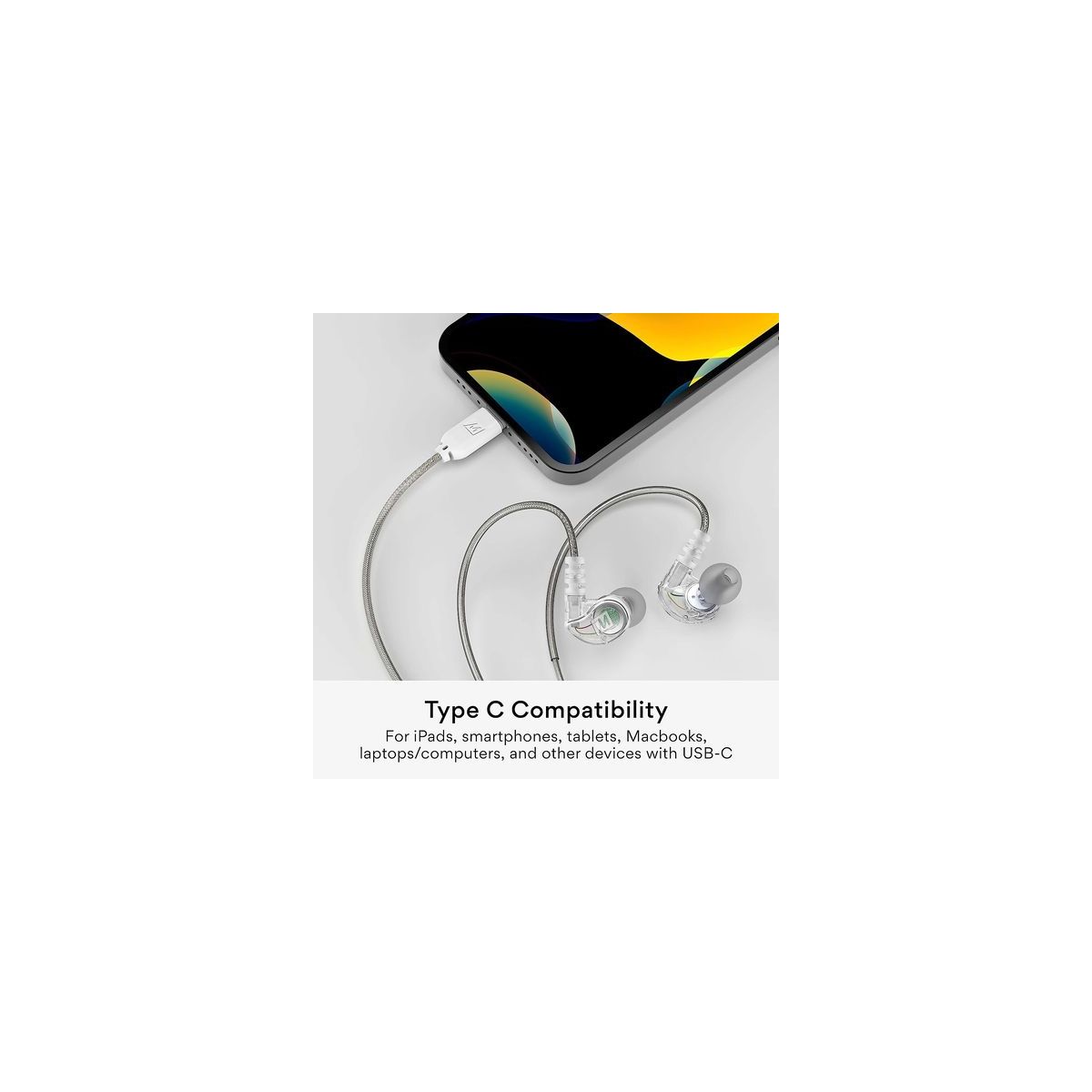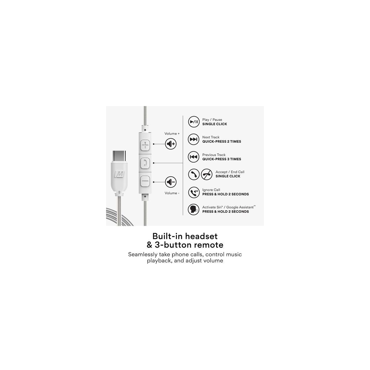 The M6 sports earphones utilize memory wire earhooks that conform perfectly to your ears, providing an ergonomic and secure over-the-ear fit that stays comfortable all day and never falls out. A Type C connector delivers high quality digital sound and compatibility with modern devices while the built-in microphone and 3-button remote allow for seamless control of phone calls, music playback, and volume