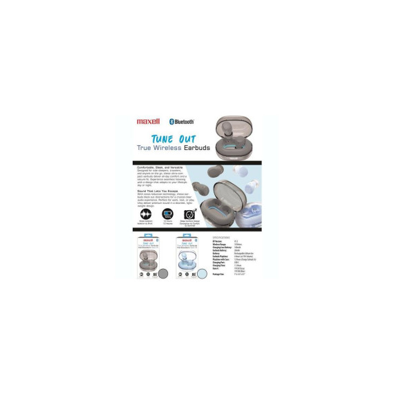Maxell - Maxell ECO-LW Tune Out Bluetooth Earbuds True Wireless (Gray)