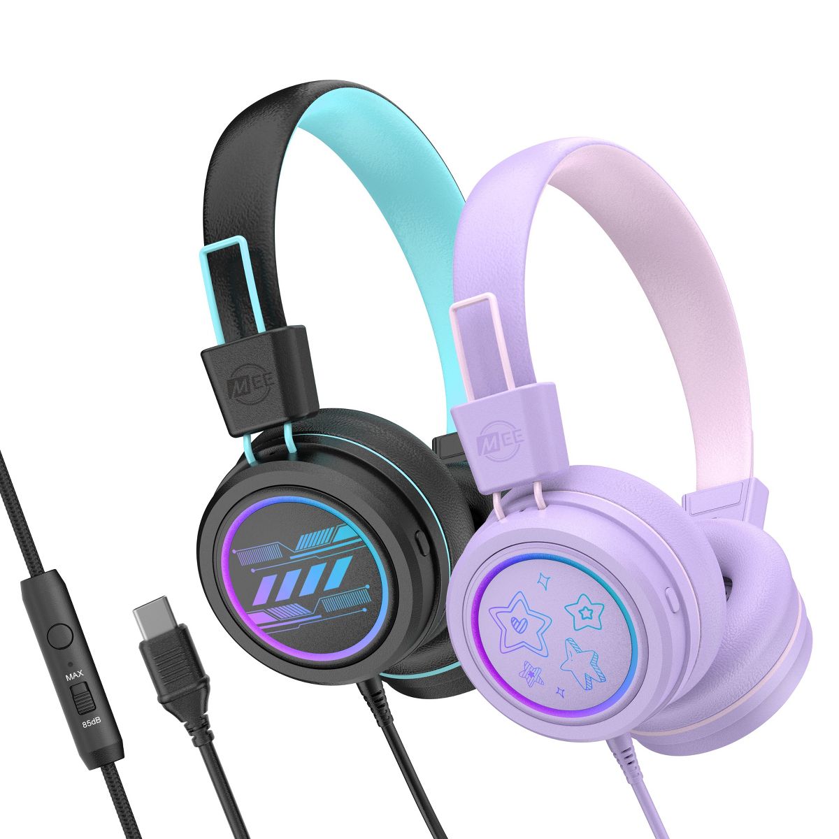 The MEE audio KidJamz KJ55U headphones are designed for kids, featuring volume-limiting technology to protect young ears and build healthier listening habits, while delivering clear, high-quality sound. These lightweight, durable headphones include soft, comfortable ear cushions and an adjustable headband for a secure fit. The built-in LED lights add a fun touch, making them perfect for travel, school, or everyday use. Safe, stylish, and kid-friendly, the KidJamz KJ55U makes listening both fun and safe. Perfect for your back to school shopping list, the KidJamz KJ55U are awesome go-to headphones with a USB Type C jack to use with laptops, Chromebooks, and other devices with USB-C connectors including iPhone 16 / 16 Pro / 15 / 15 Pro, iPad, and other smartphones/tablets.