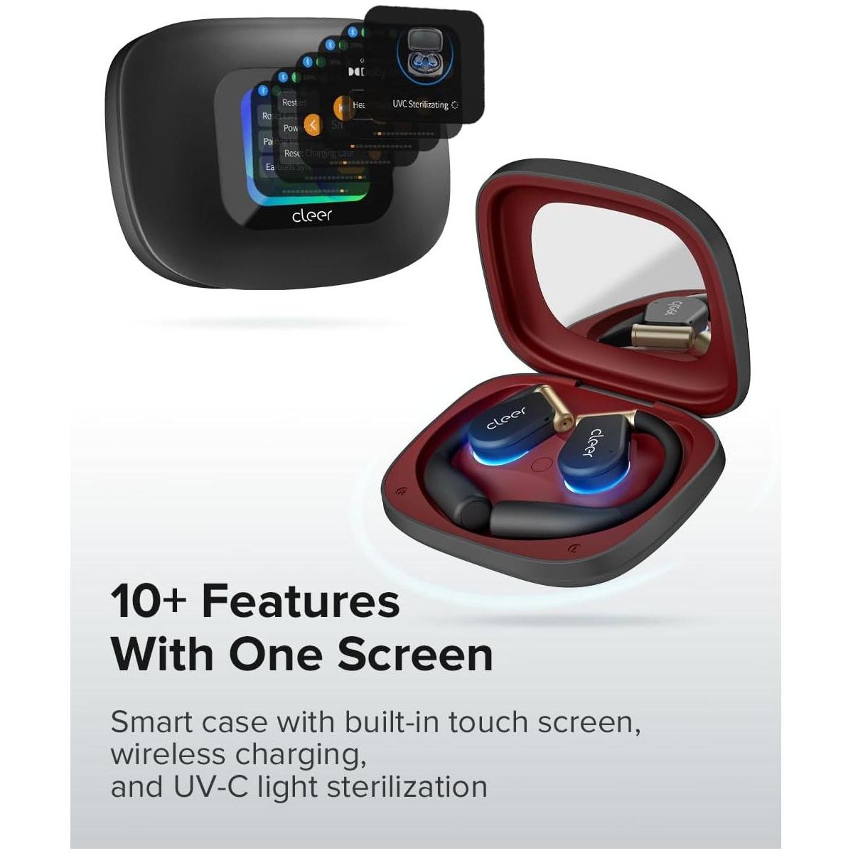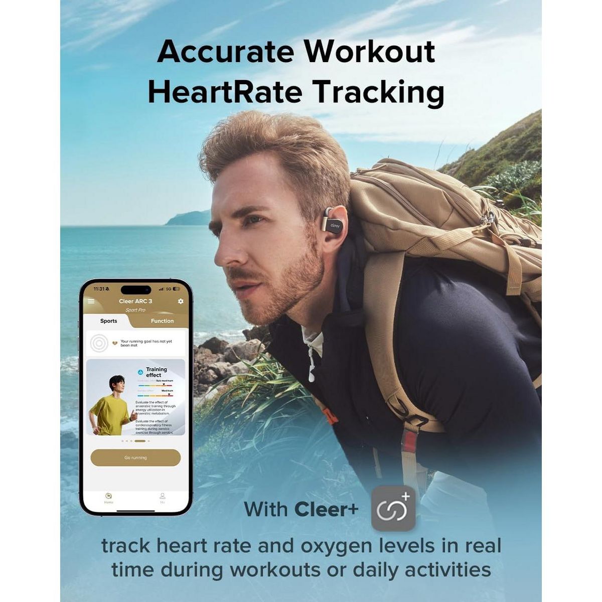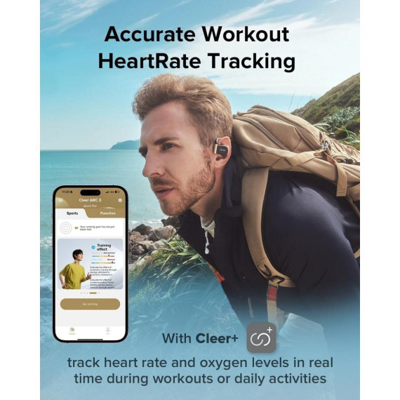 Cleer ARC3 Sports Pro Open Ear Headphones Heart & Blood Oxygen Monitor Dolby Audio Snapdragon Sound True Wireless Earbuds, 40Hr, BT 5.4, IPX 7 - Black