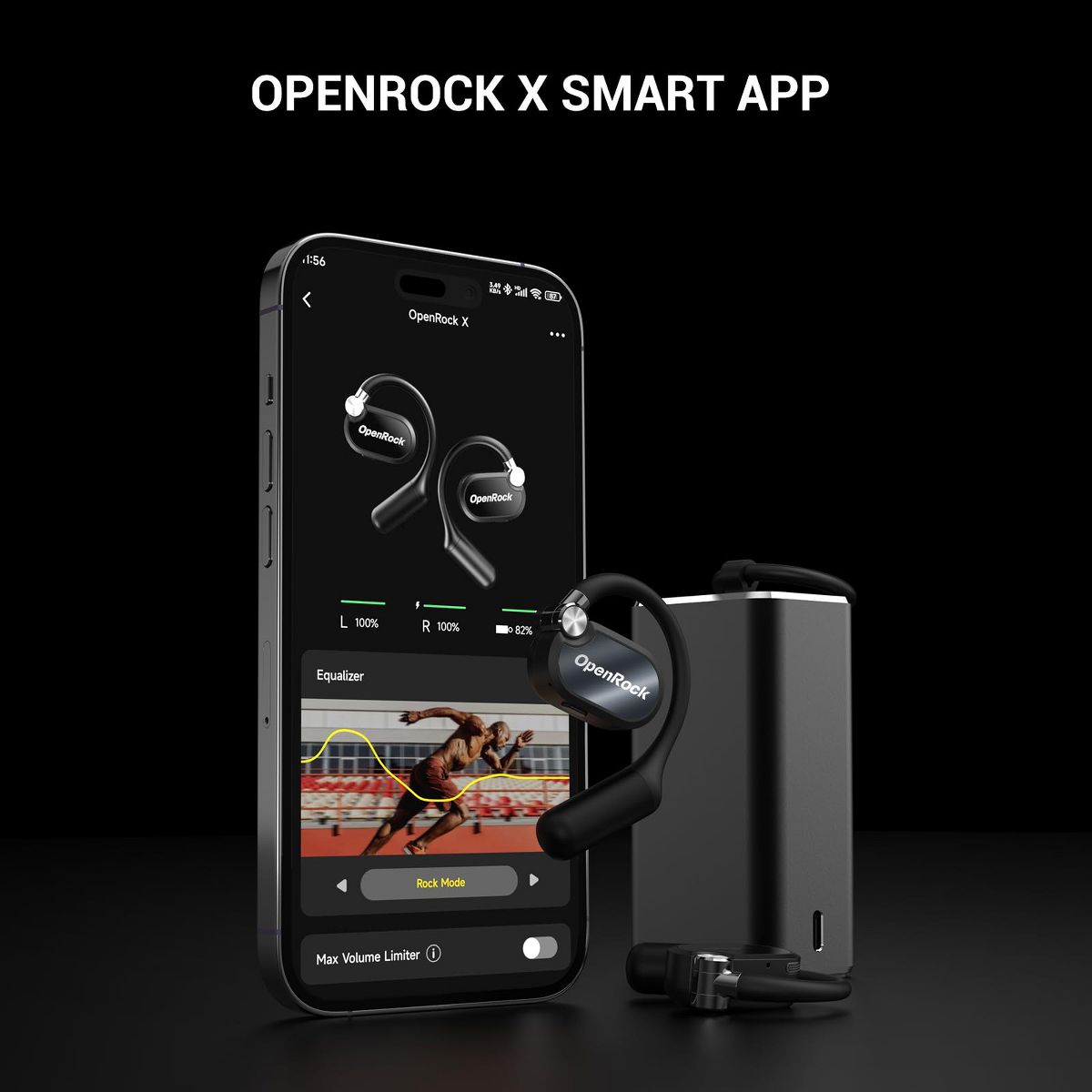 OpenRock X Open-Ear Headphones, Upgraded Silicone Earhooks, 48Hrs Playtime, IPX5, ENC Microphone, Smart App, Bluetooth 5.3, for Sports, Office