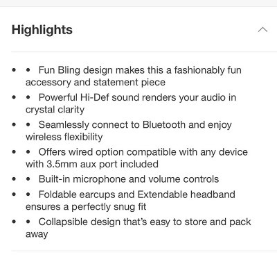 ART+SOUND Bling Wireless / Wired Bluetooth Headphones: Adjustable Over-Ear Design