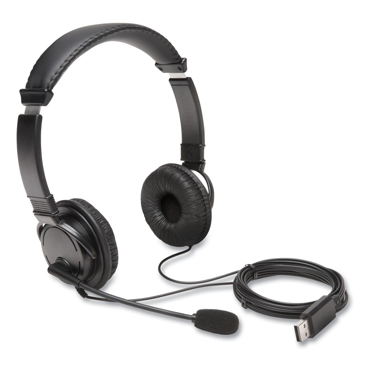 The Kensington Hi-Fi Headphones with Microphone, 6 ft Cord, Black delivers exceptional sound with powerful 40 mm drivers for deep bass and a wider dynamic range. The padded headband and plush sealed earpads ensure comfortable use, while the flexible earpads enable single-sided monitoring capability. The gold-plated plug stands up to heavy use.