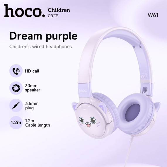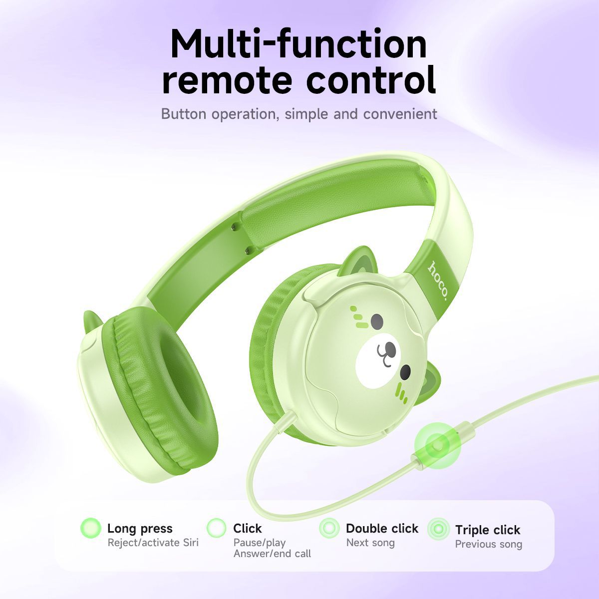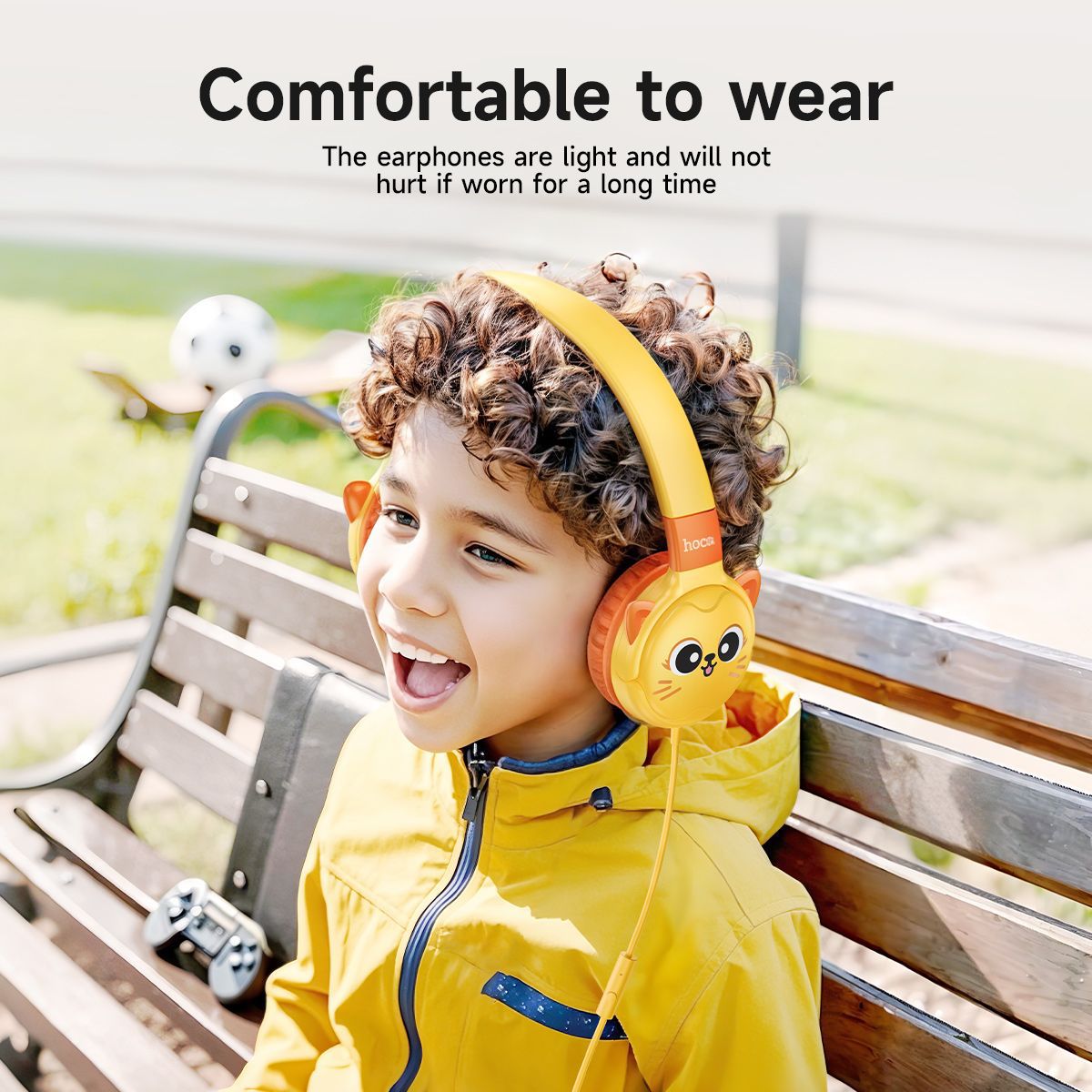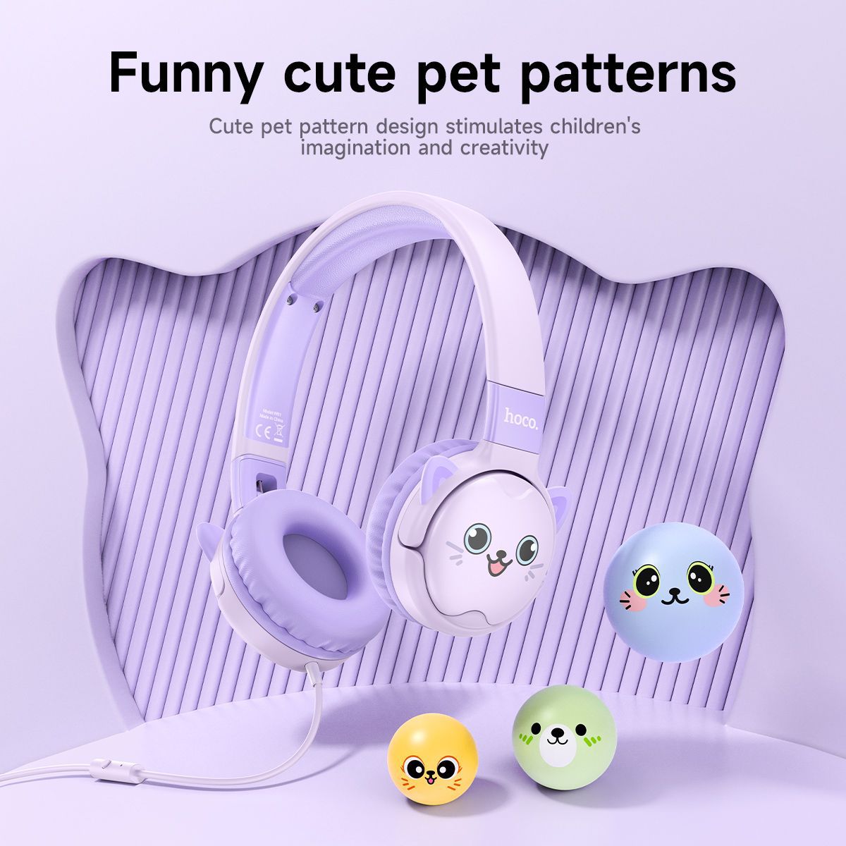 Designed with little listeners in mind, the hoco Kids Wired Headphones prioritize safety, comfort, and ease of use. Soft, cushioned earcups gently conform to children's ears for a snug, comfortable fit, even during extended wear. The exterior features playful animal designs and comes in a variety of vibrant colors, making them a fun and stylish choice for young music lovers. Whether for school, travel, or playtime, these headphones deliver joyful sound in a kid-approved package.