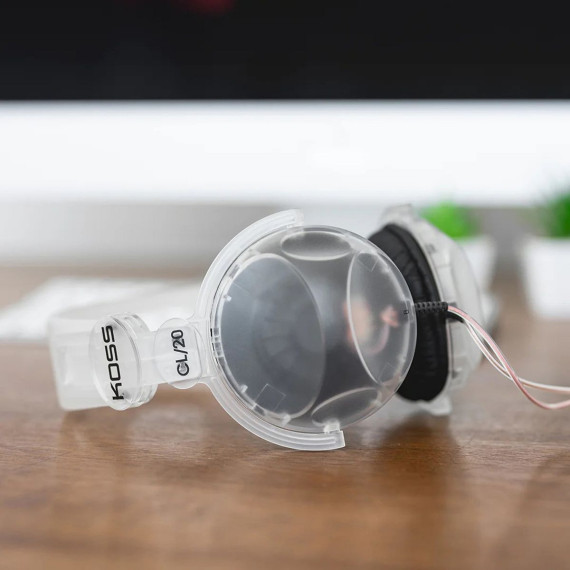 The Koss® CL20 Over-the-Ear Wired Headphones feature a unique, clear transparent design with soft leatherette cushion. It delivers a balanced sound signature with deep bass, crisp highs, and a full midrange from 30 Hz to 20 kHz, making them ideal for enjoying high-fidelity music, movies, and games. Connect to computers, tablets, and music players with the standard 3.5-mm headphone Jack plug.
