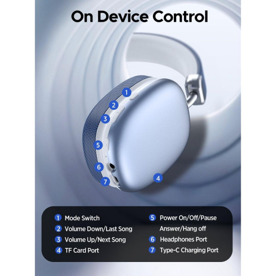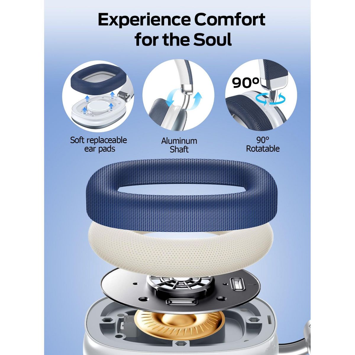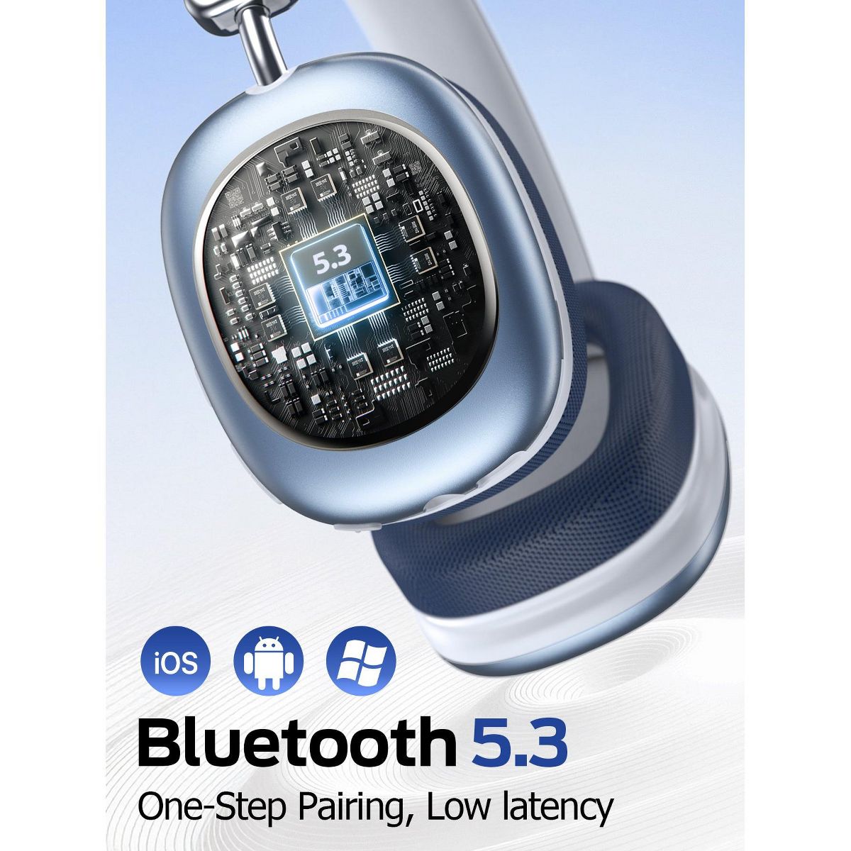 SY-BT1632 Blue Over-Ear Bluetooth Headphones: 40mm Bass Driver, Bluetooth 5.3 Dual-Mode, 40hr Battery, Comfort Fit