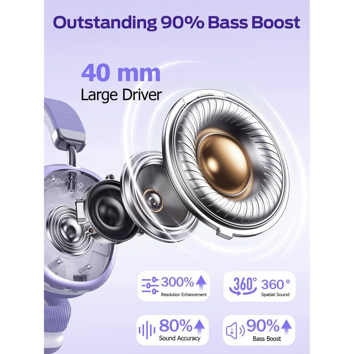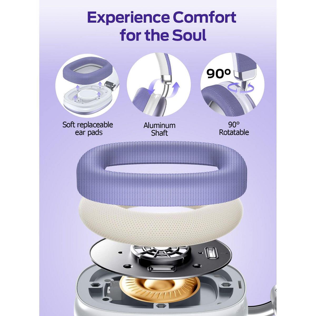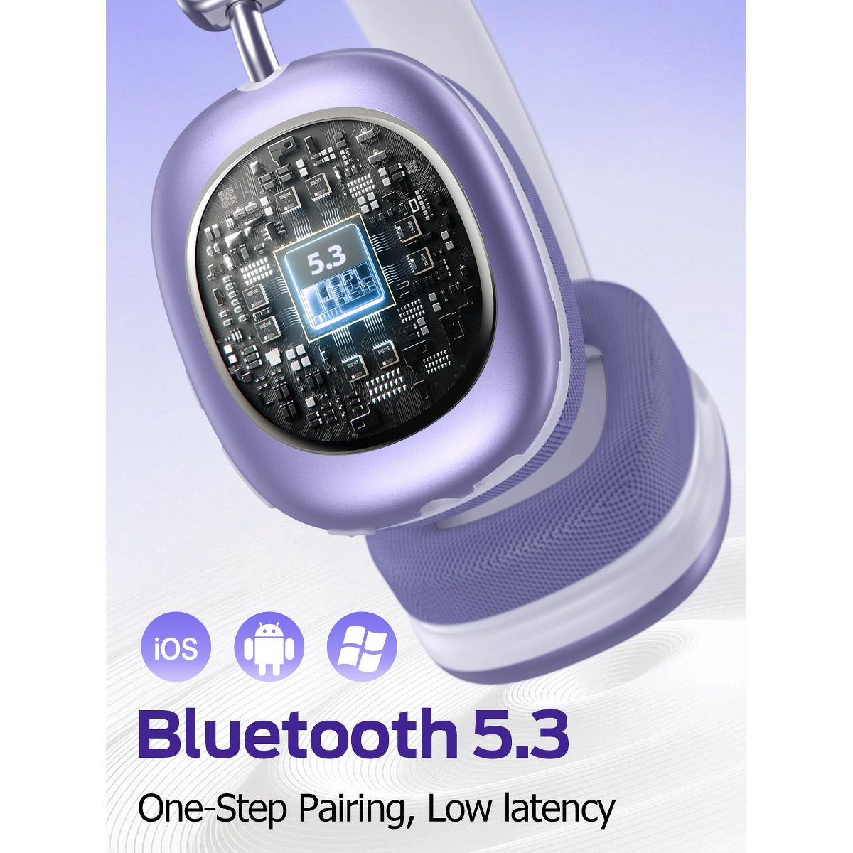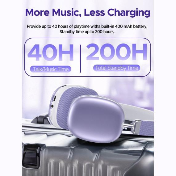 SY-BT1632 Purple Over-Ear Bluetooth Headphones: 40mm Bass Driver, Bluetooth 5.3 Dual-Mode, 40hr Battery, Comfort Fit