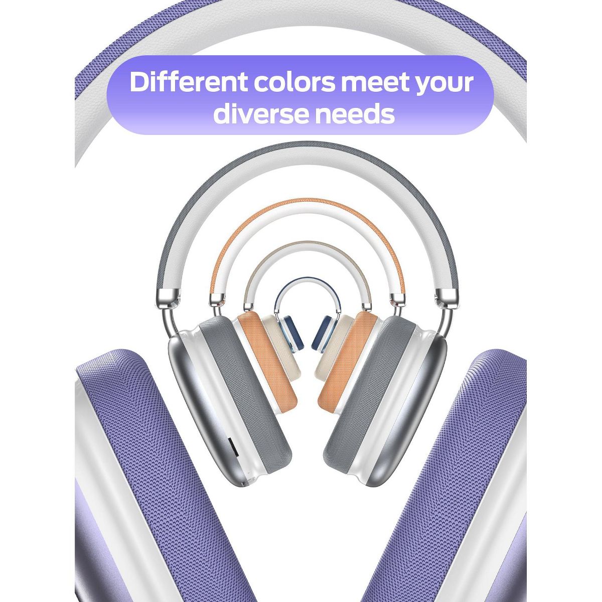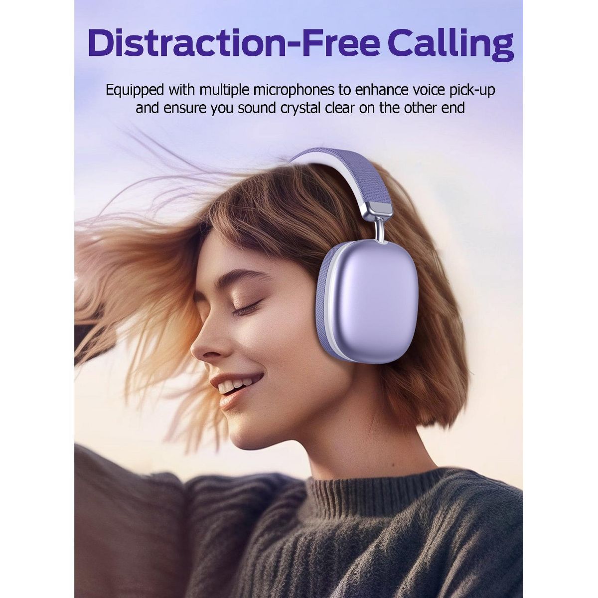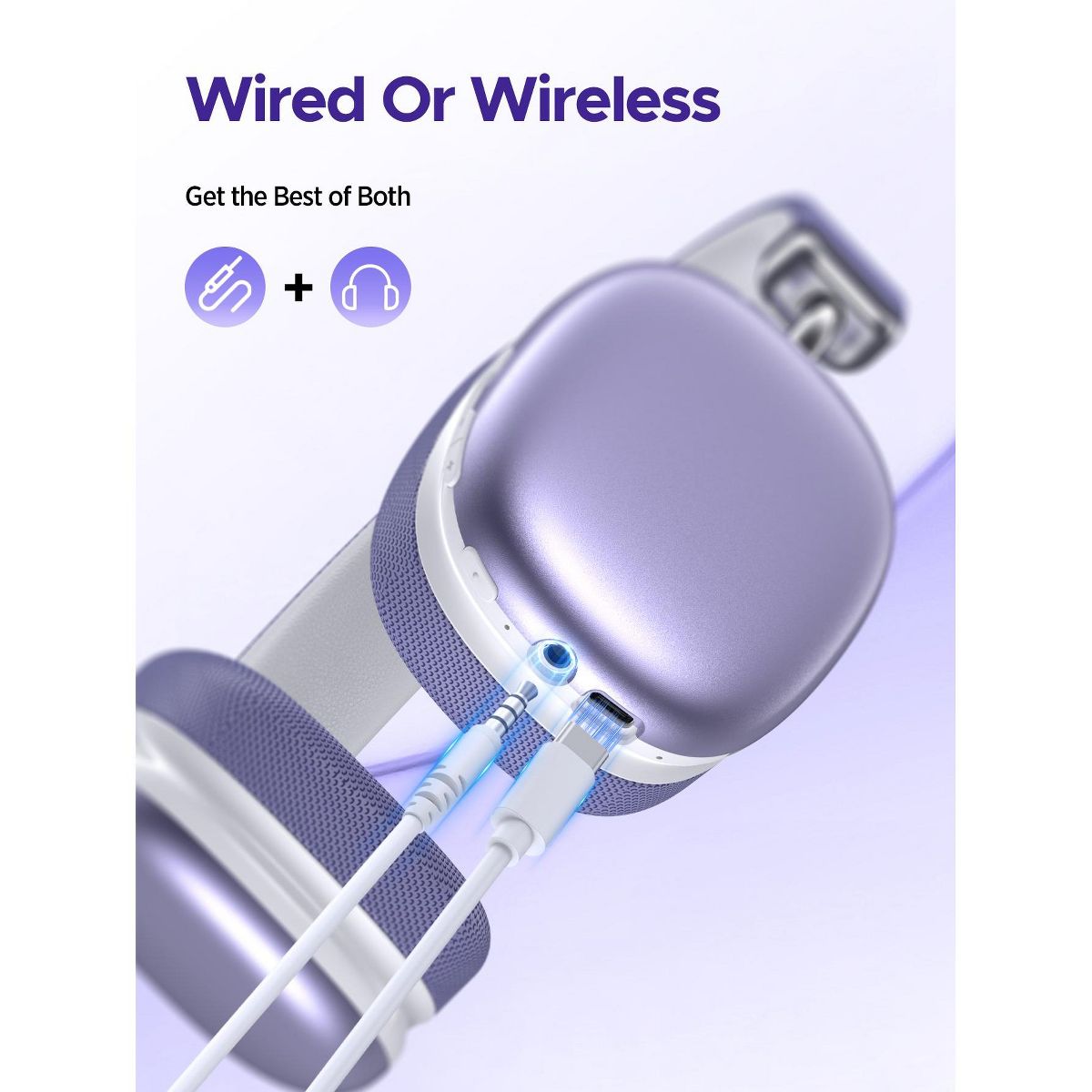 SY-BT1632 Purple Over-Ear Bluetooth Headphones: 40mm Bass Driver, Bluetooth 5.3 Dual-Mode, 40hr Battery, Comfort Fit